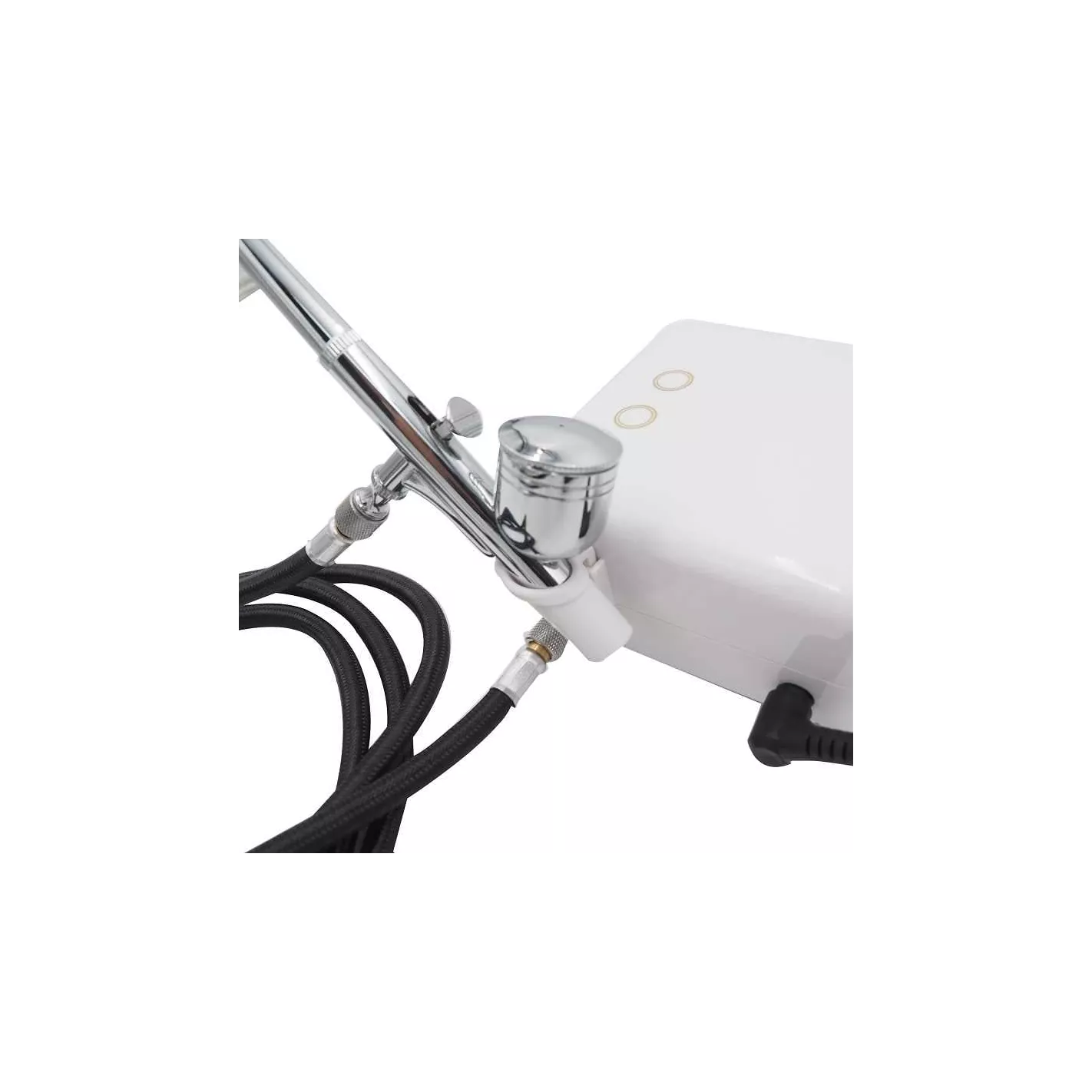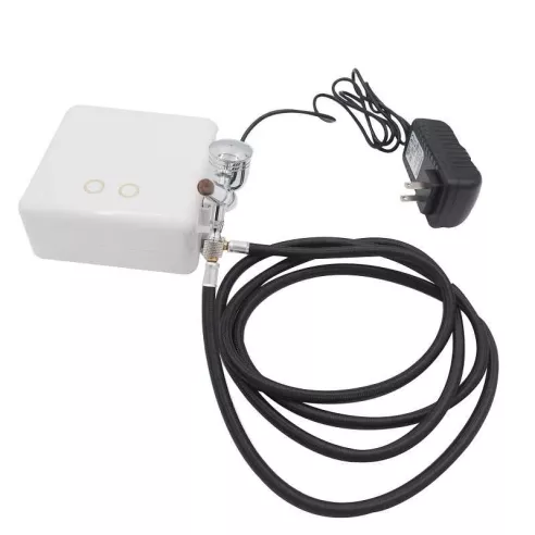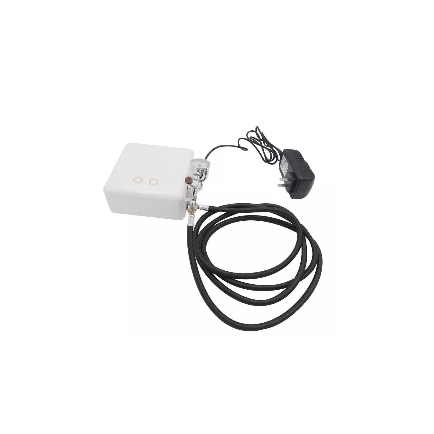 Perfecto para arte artístico, belleza de uñas, arte corporal, pintura de diseño, pintura de modelo, decoración de pasteles, artesanía, modelos y arte fino como ilustración de pintura de coches, pintura textil y de camisetas. Este compresor utiliza un diseño especial sin tipo de aceite. Su aceite hace que el medio de transmisión no esté contaminado. El fluido de salida es estable y el rango de presión es de 0 a 25 psi.