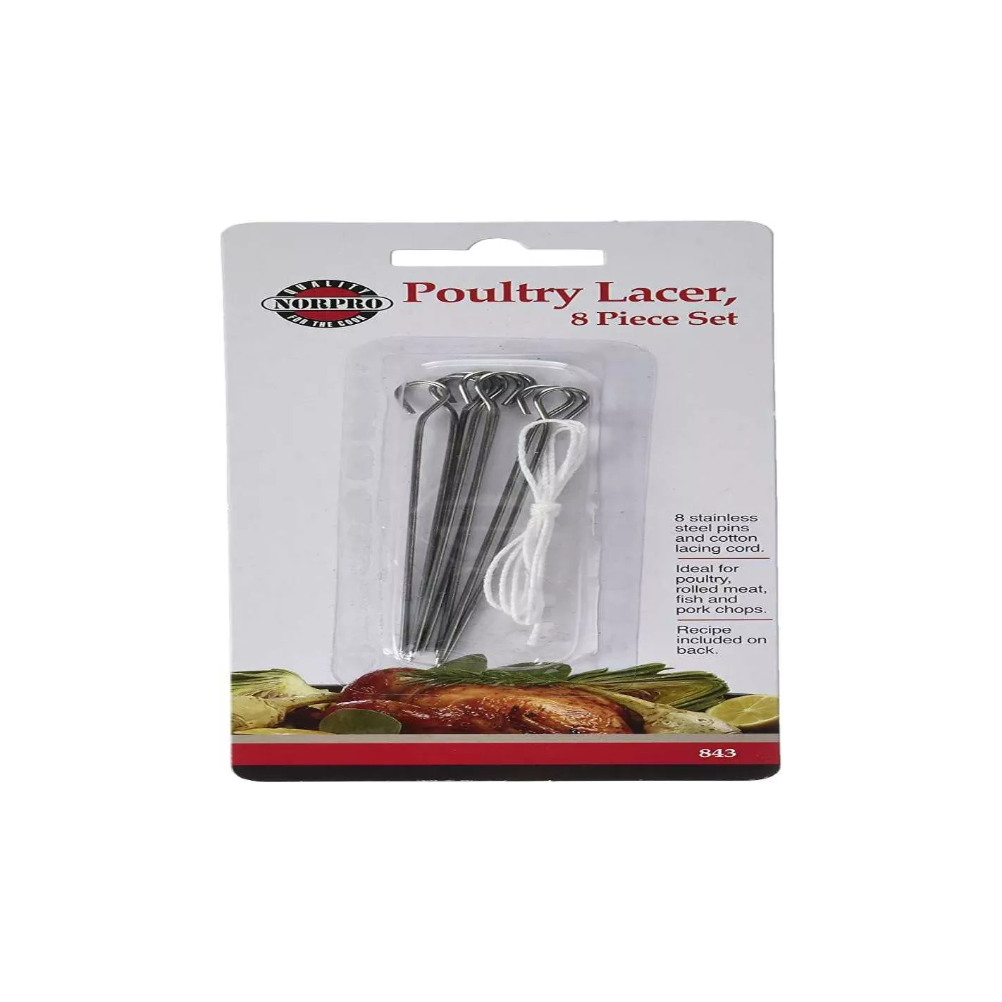 Es un gran regalo para aquellos que aman cocinar pavos rellenos. Excelente para usar para mantener el relleno dentro de las aves mientras se hornea. Hecho de acero inoxidable e incluye cordones para que pueda comenzar a usarlos de inmediato