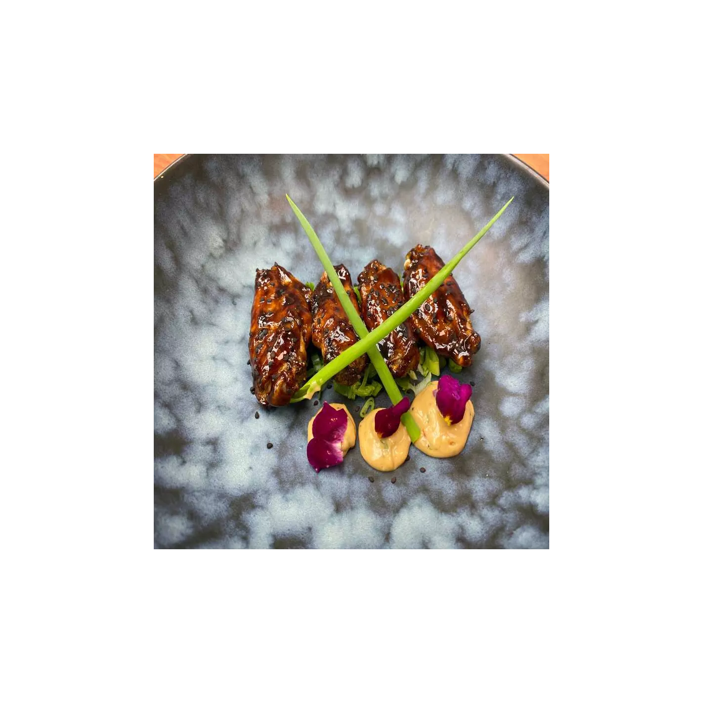 1- Sazonar las alas con el ajo granulado, sal, pimienta y aceite de sésamo.