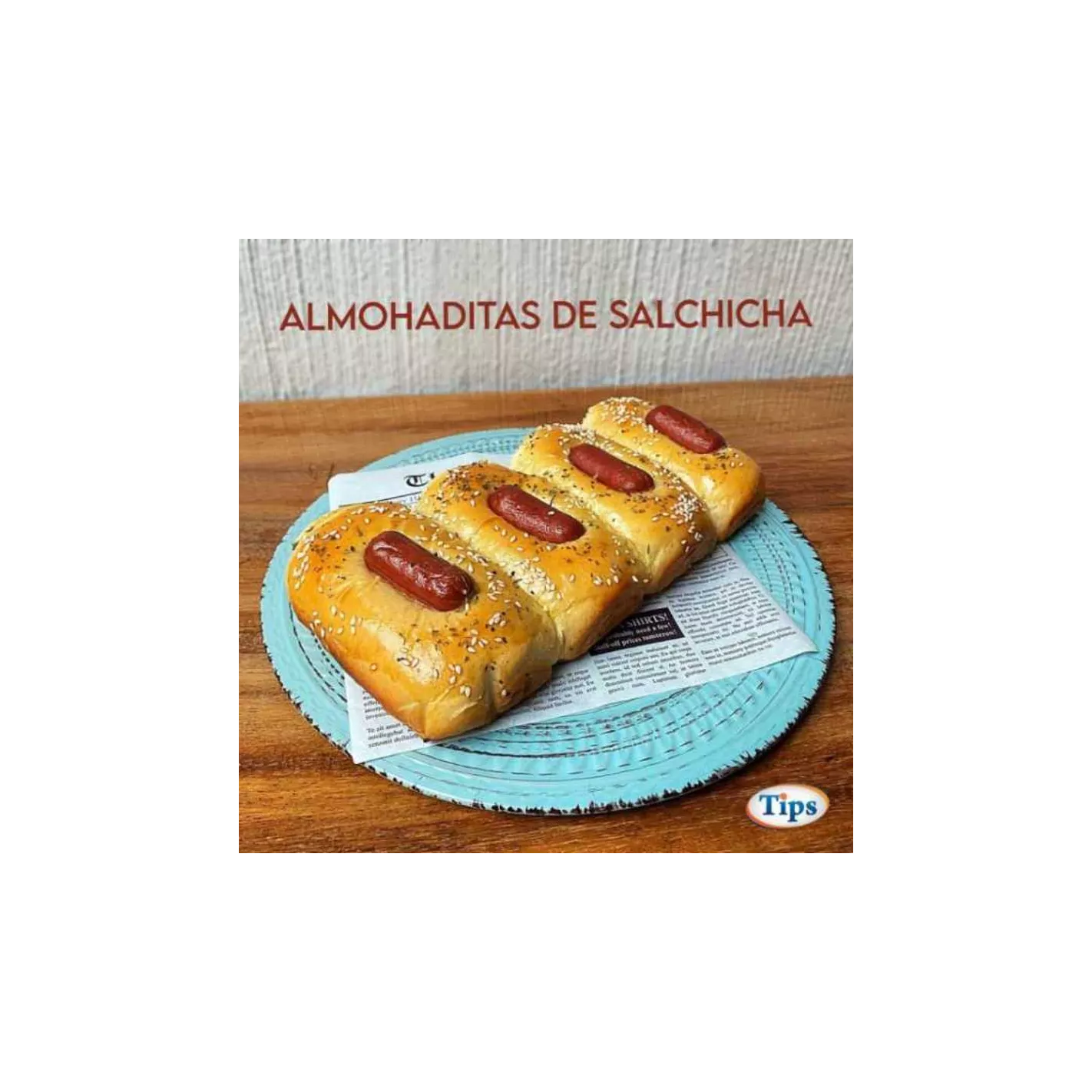 4. Desgasificar, formar 12 bolitas de 60 grs y formar según el video, dejar crecer de nuevo, colocar huevo batido y colocar la salchicha, ajonjolí o hierbas.