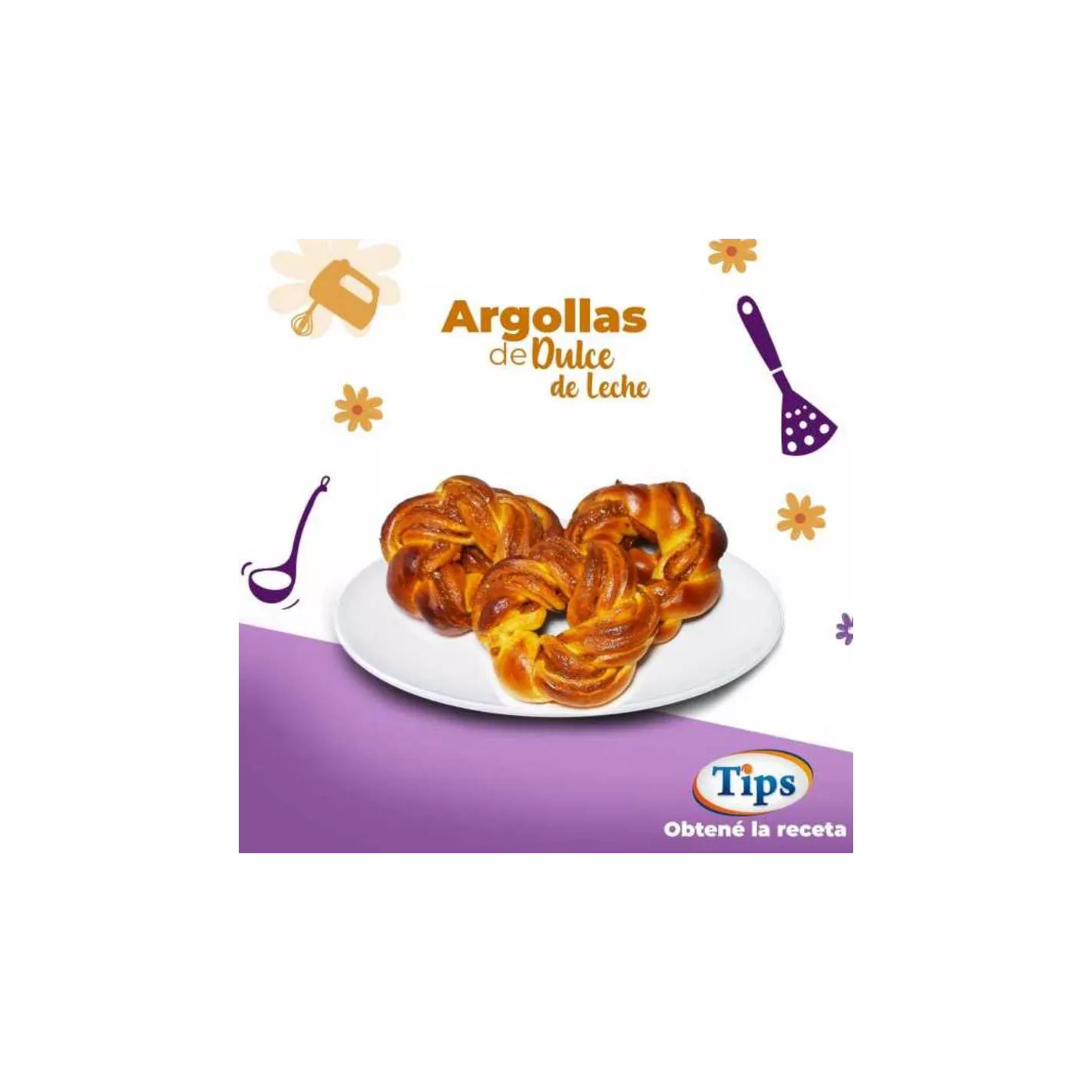 4-Por último agregamos la mezcla del pre fermento a la mezcla de harina y batimos solo hasta obtener una masa, terminanos de unir los ingredientes en la mesa, envolvemos en plástico adhesivo y dejamos reposar por 15 minutos, luego de transcurrido este tiempo cortamos la masa en 5 partes iguales, formamos las argollas y rellenamos con el dulce leche tal como se muestra en el vídeo, y dejamos fermentar por 15 minutos más.