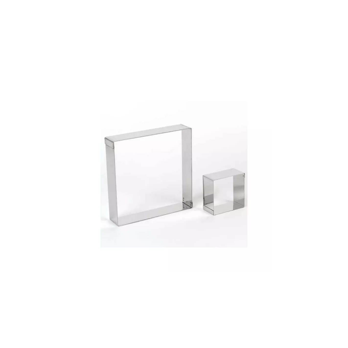 Este aro esta fabricado con acero inoxidable de alta calidad y cuenta con unas medidas de : ancho 14 centímetros, profundidad 14 centímetros y una altura de 4 centímetros. Apta para poder dar formas cuadradas a alimentos que requieran una presentación elegante.