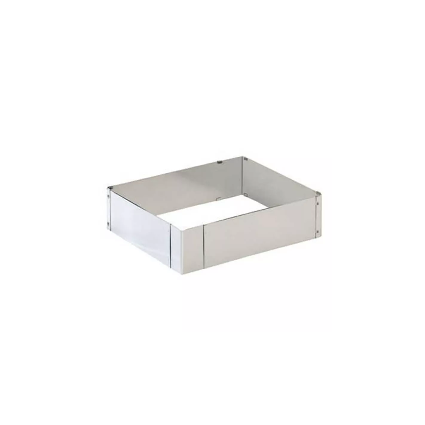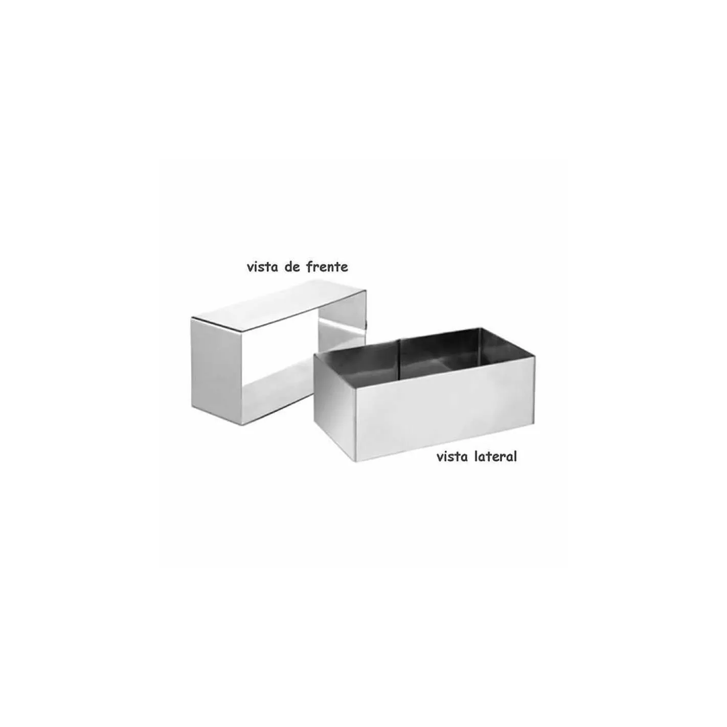 Crea reposterias con forma rectangular con este aro especial fabricado en acero inoxidable. Cuenta con una medida de 7 x 5 x 4 centímetros, y es usado en mayor frecuencia para postres dulces.