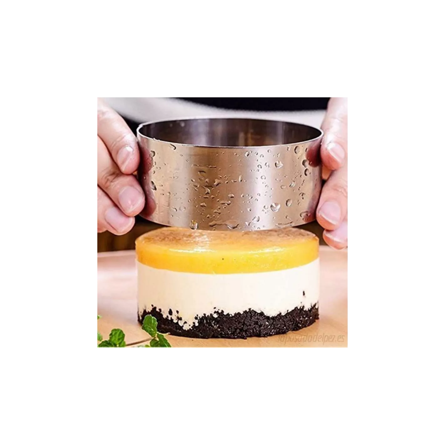 Aro redondo de acero inoxidable para postres y entrantes adecuado para el corte profesional, elaborar porciones, preparar y servir los entrantes y los postres. Los moldes redondos para postres y entrantes son también adecuados para servir pan y pastas. Con el molde redondo podrá elaborar fácilmente creaciones de arroz de varias capas o postres de hasta tres capas. El secreto está, por una parte, en la forma circular de acero inoxidable y, por otra, en la maza / sello que compactan primero la comida para que después se deshaga fácilmente. Así puede crear rápida y fácilmente aperitivos, guarniciones y postres como arroz basmati, cremas dulces, postres de chocolate, etc. y, al mismo tiempo, presentarlos en el plato. En particular con los postres de varias capas se ahorra un montón de trabajo. Con el elevador puede servir con facilidad el postre en el plato. Tire del molde redondo hacia arriba y ya está. ¡Un producto que no puede faltar en ninguna cocina moderna! Todas las piezas son de acero inoxidable, adecuadas para alimentos, insípidas, aptas para lavavajillas y fáciles de limpiar. Después de la limpieza en el lavavajillas, las piezas deben secarse con un paño de cocina para evitar la oxidación.