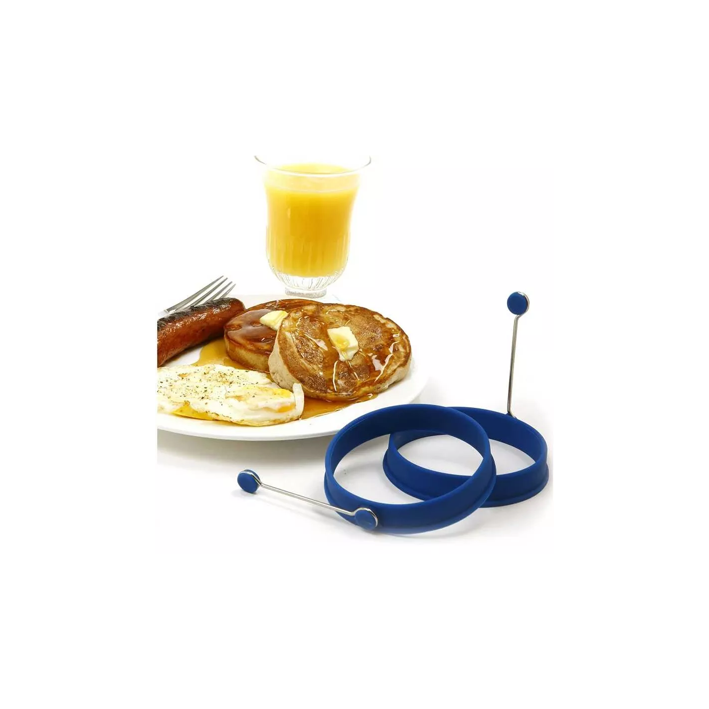 Ideal para hacer huevos redondos o para sándwiches caseros, lo suficientemente profundo como para agregar fácilmente extras como verduras, queso o jamón o tocino cocido. Las posibilidades son infinitas, cuenta con mangos para retirarlos fácilmente de la sartén. Los mangos se pueden doblar ligeramente cuando se usa una tapa, doble hacia abajo para guardarlos fácilmente. El silicón es resistente al calor a 500° F (260° C)
