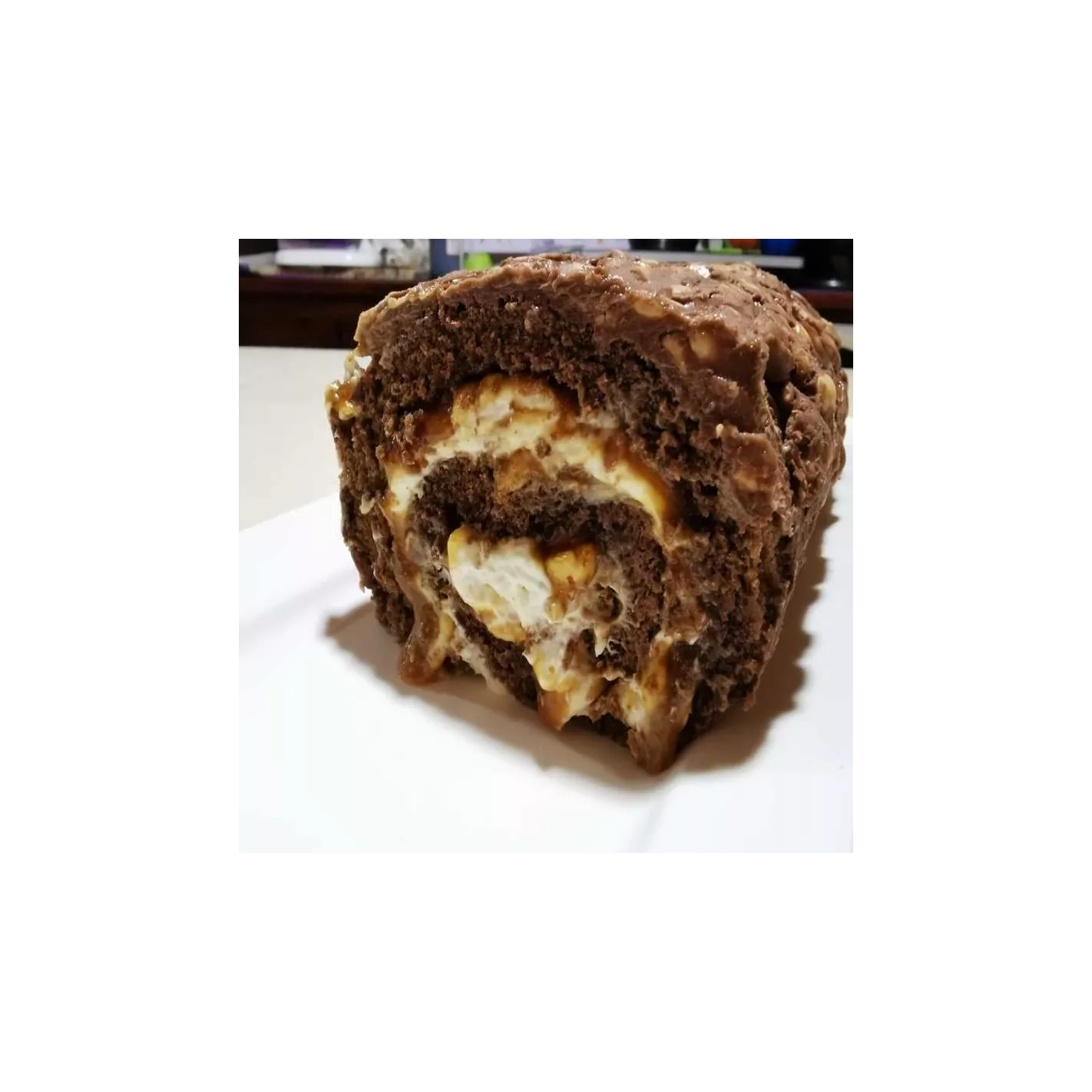 1-Extender el arrollado coloque una capa del caramelo con maní otra de la crema enrolle deje reposar por 30 minutos.