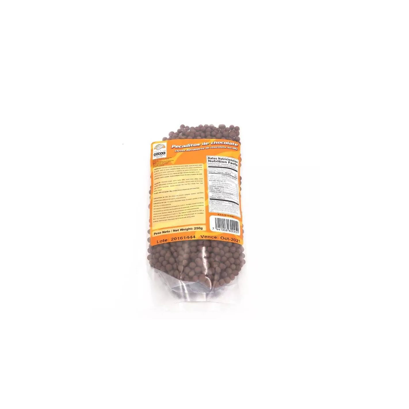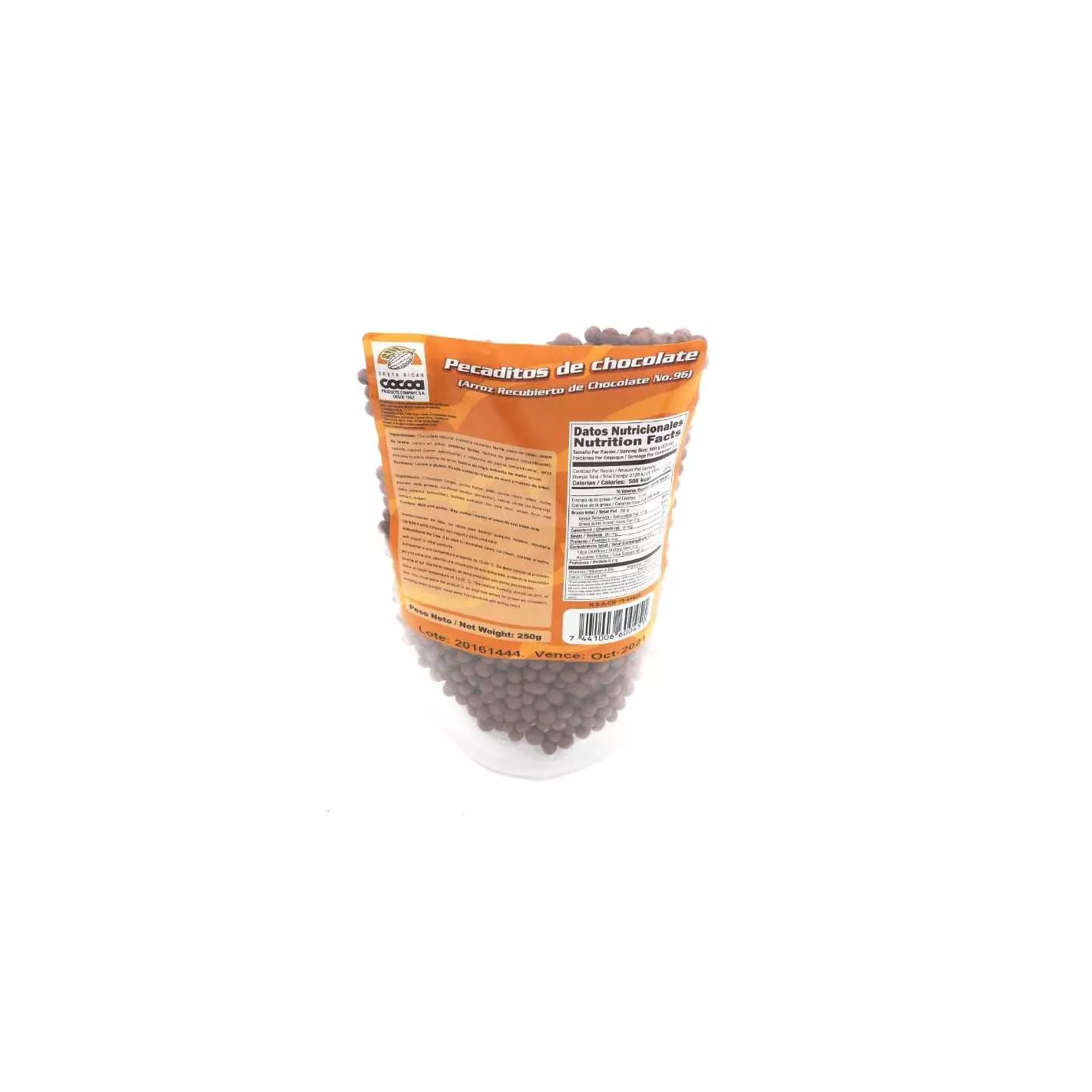 Arroz tostado recubierto de chocolate con leche. Ideal para decorar queques y repostería variada y como topping de helados, yogurts, postres. Sabor dulce y crujiente.