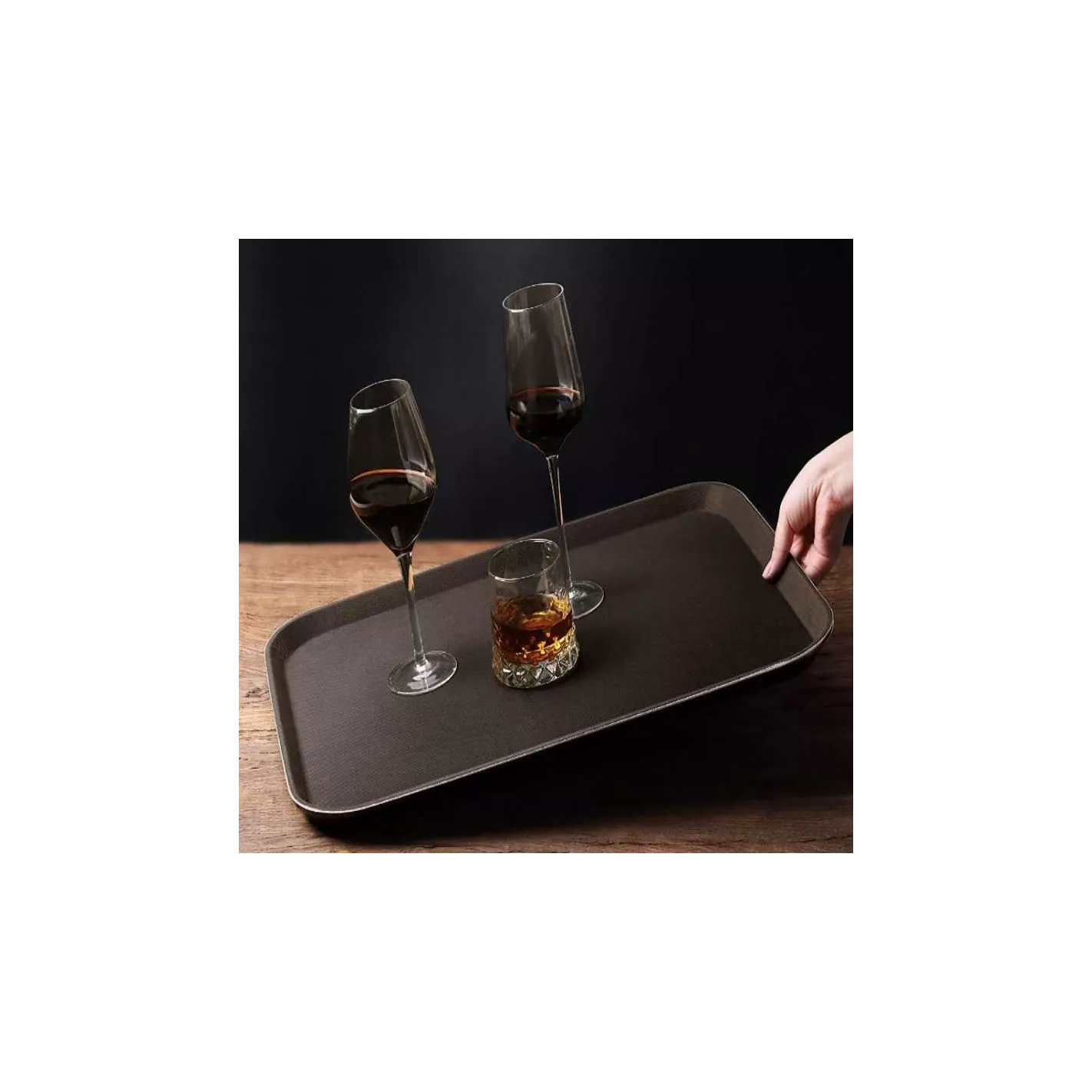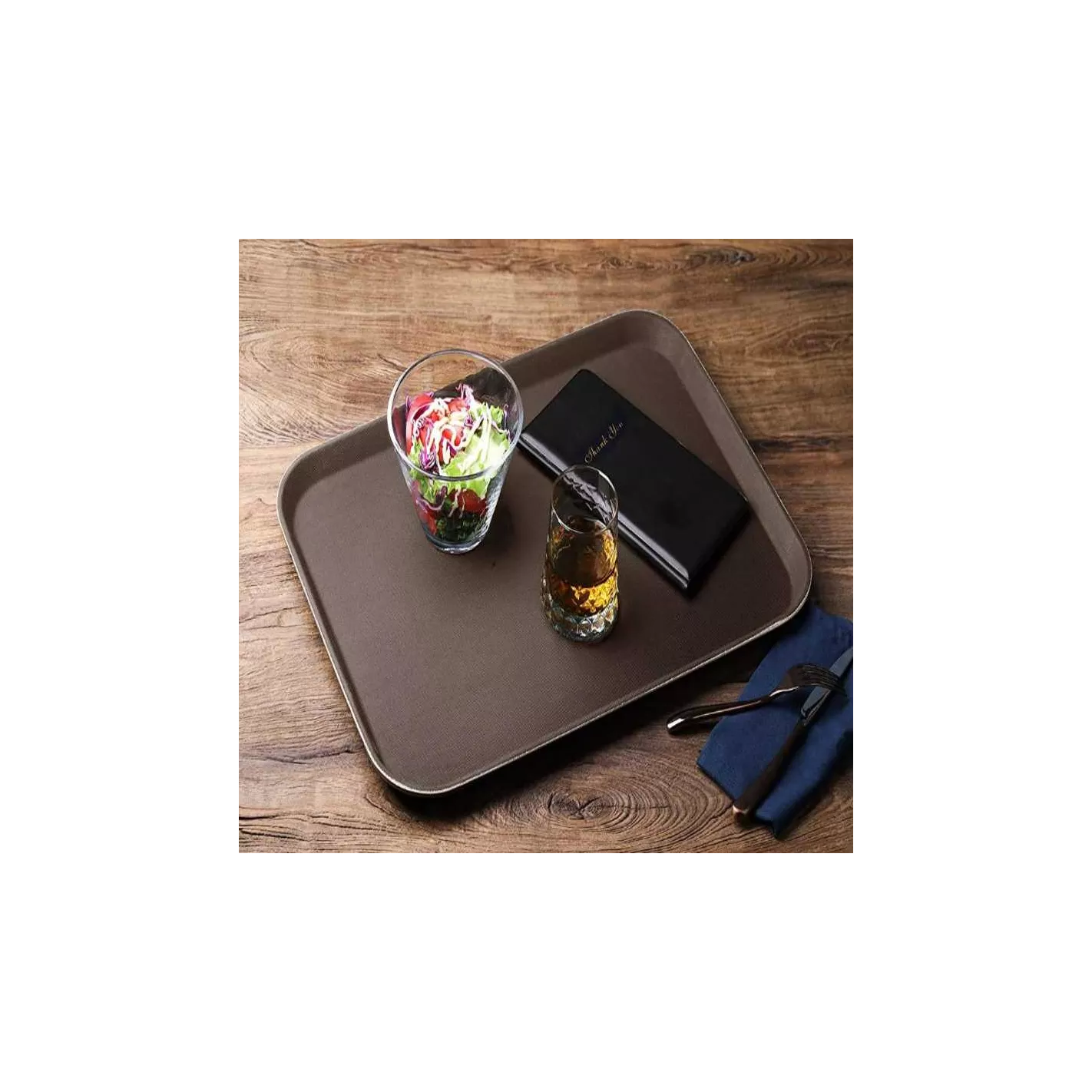 Llevar un brazo con extrema confianza requiere más que solo músculo. Utiliza las herramientas adecuadas para el trabajo con las bandejas de servir de polipopileno antiadherentes aprobadas por la NSF. Ideal para restaurantes, bares y otras empresas, estas bandejas ayudarán a su personal de servicio a apoyar sus cargas sin preocuparse de las tazas y platos se muevan por la bandeja. Una herramienta perfecta para un excelente servicio.