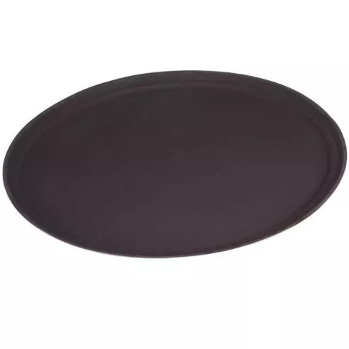 El azafate está construido con fibra de vidrio antideslizante, su presentación es en color café con forma ovalada y su medida es de 31 pulgadas de largo. Gracias a su fabricación de fibra de vidrio lo vuelve un producto de alta longevidad en el área de trabajo y seguro a la hora de transporta.
