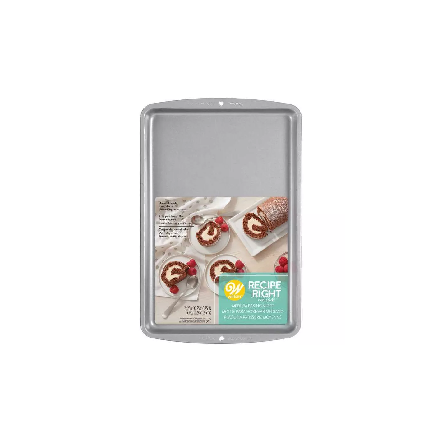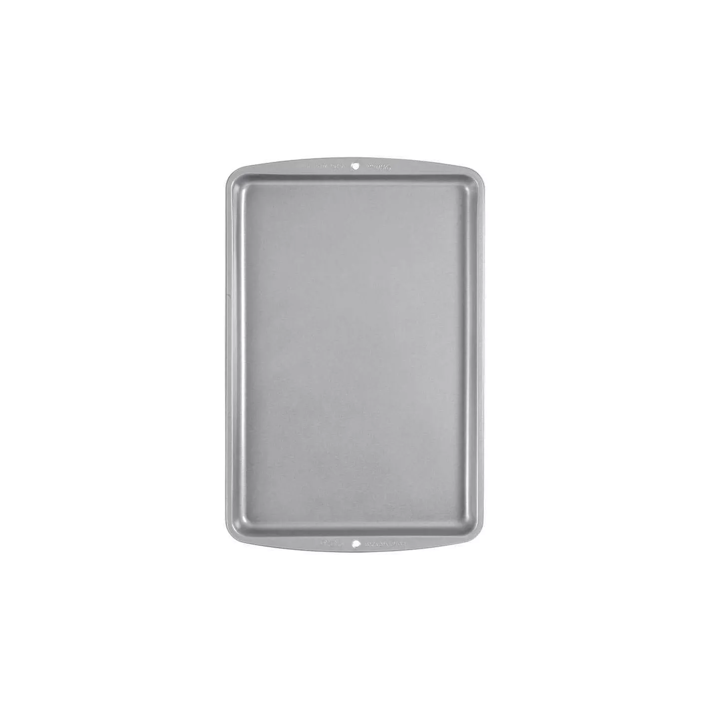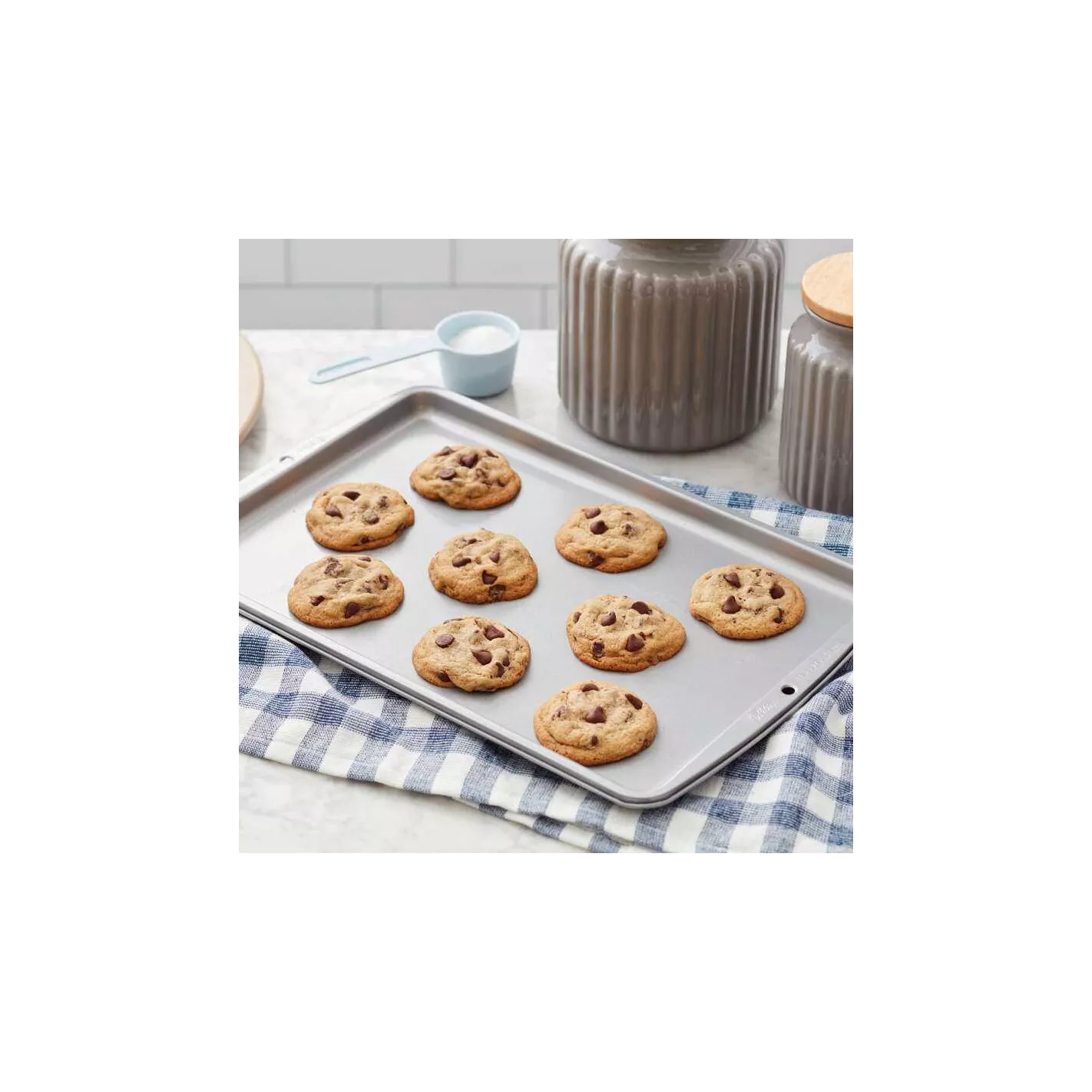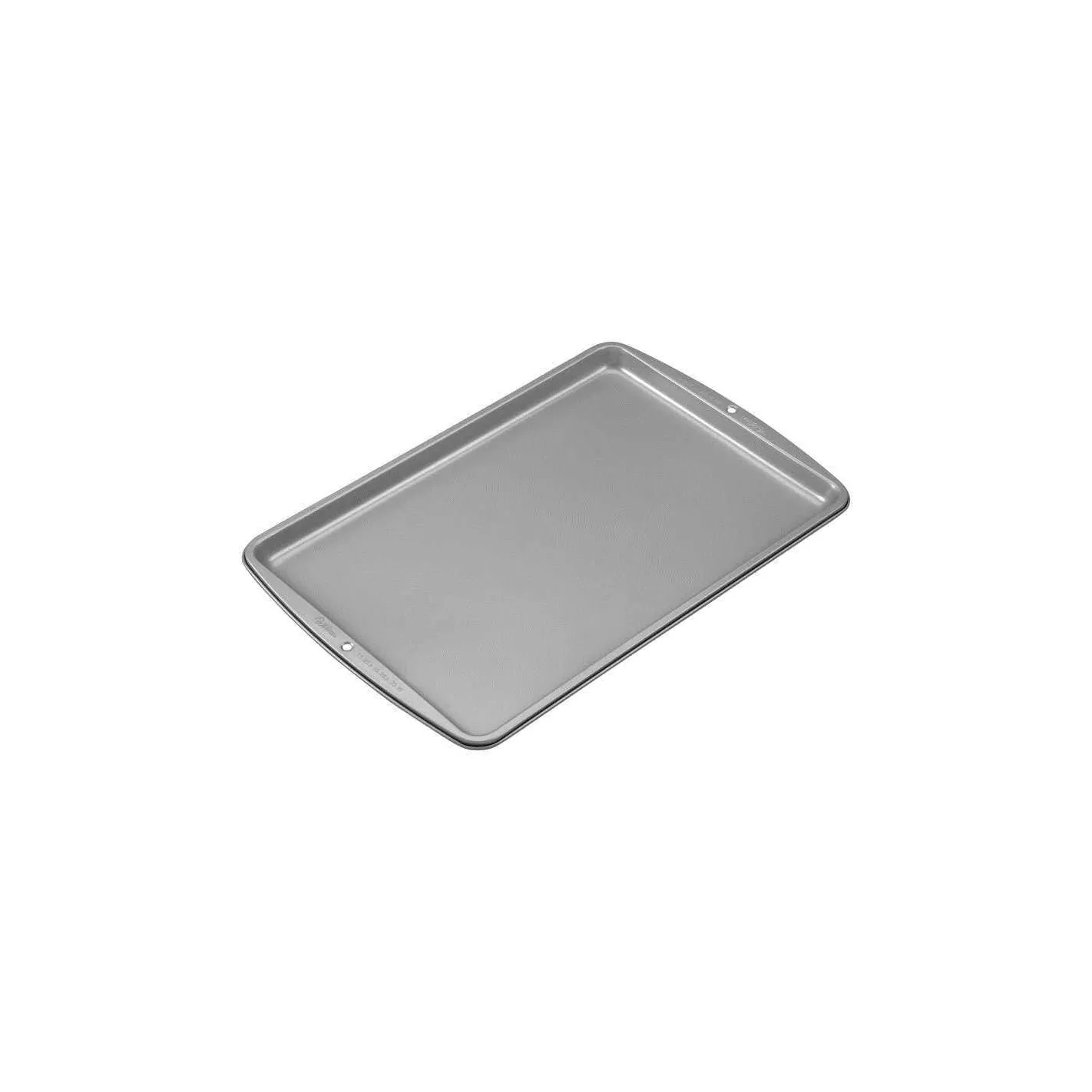 Esta bandeja antiadherente versátil no solo funciona para galletas de tamaño mediano, también funciona para aperitivos, carnes y casi cualquier cosa que se pueda hornear. La superficie antiadherente hace que los alimentos se liberen fácilmente y la limpieza sea rápida. De uso múltiple que proporciona un rendimiento de calentamiento uniforme. Las manijas permiten agarrar fácilmente la bandeja. Los expertos prefieren los productos horneados perfectamente dorados.MATERIAL: ACERO