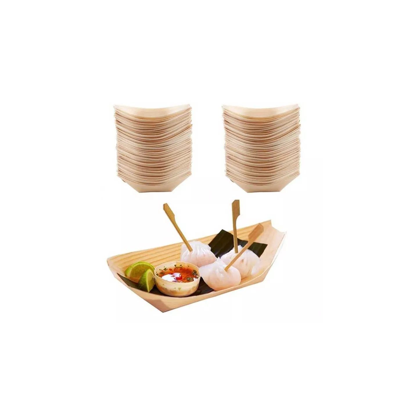 Utiliza estas resistentes lanchas de bambú termo prensadas para servir aperitivos, comida para dedos y postres. Se puede utilizar tanto para alimentos fríos como calientes. Cualquier ocasión tiene un alto impacto visual de la apariencia rústica de bambú de madera, por lo que es perfecto para una variedad de ambientes como restaurantes, eventos de catering, bodas, hogar o llevarlo al aire libre en un campamento o picnic.