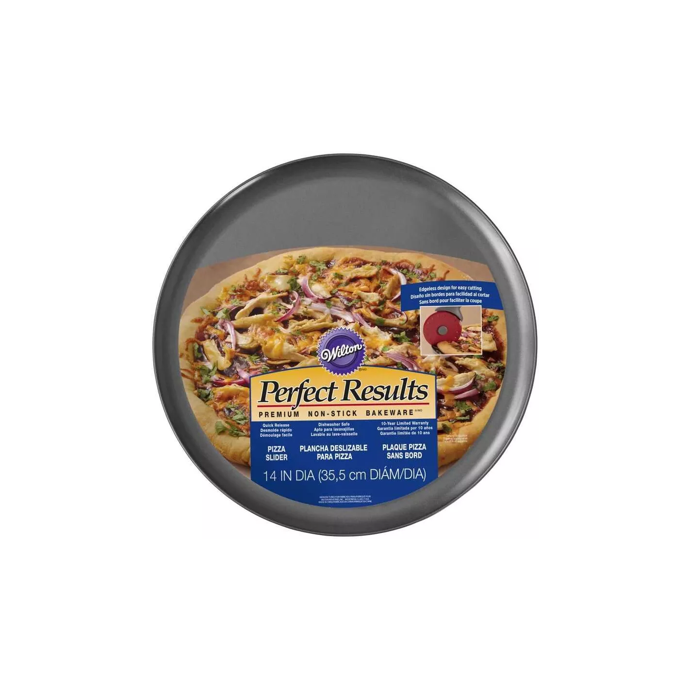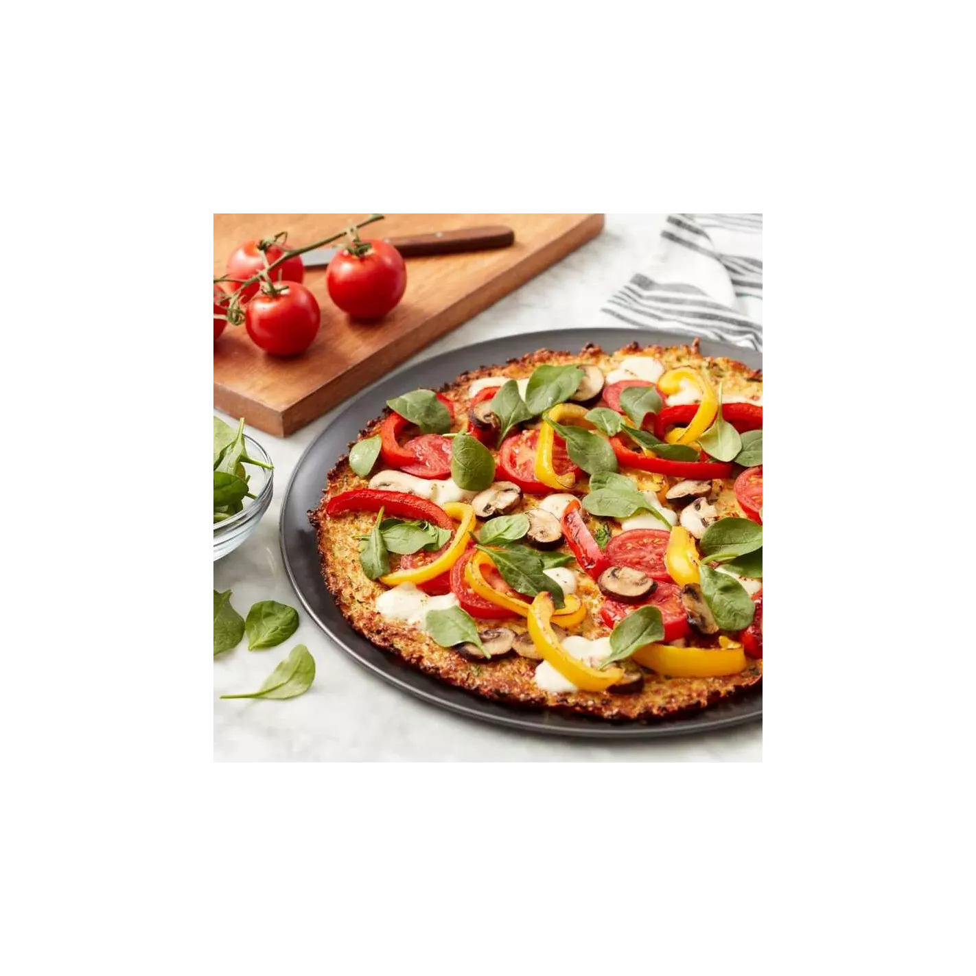 Es la noche de pizza en su casa con una pizza casera o comprada en la tienda y este molde para pizza redondo será su estrella. Molde de 14 pulgadas de diámetro x 0.4 pulgadas de profundidad con revestimiento antiadherente para una fácil liberación de los alimentos y una limpieza más rápida.