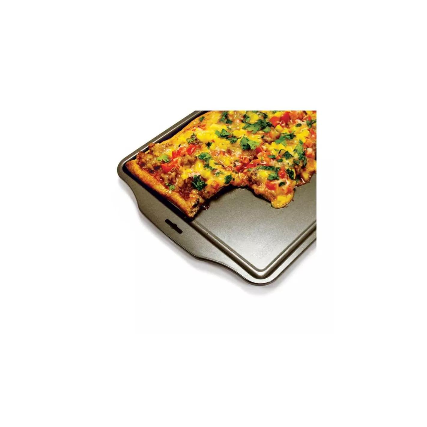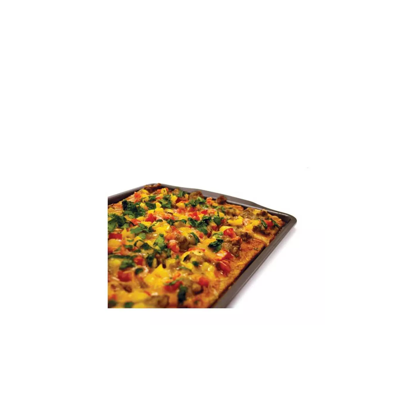 Hornee galletas, pasteles, bizcochos y panecillos, pizza y papas fritas, o úselos para recalentar sándwiches. El diseño de bordes delgados le permiten hacer rollos de gelatina, dulce de azúcar y brownies. Horneado uniforme para evitar "puntos calientes" y quemaduras. Hecho de materiales antiadherentes de grado industrial.