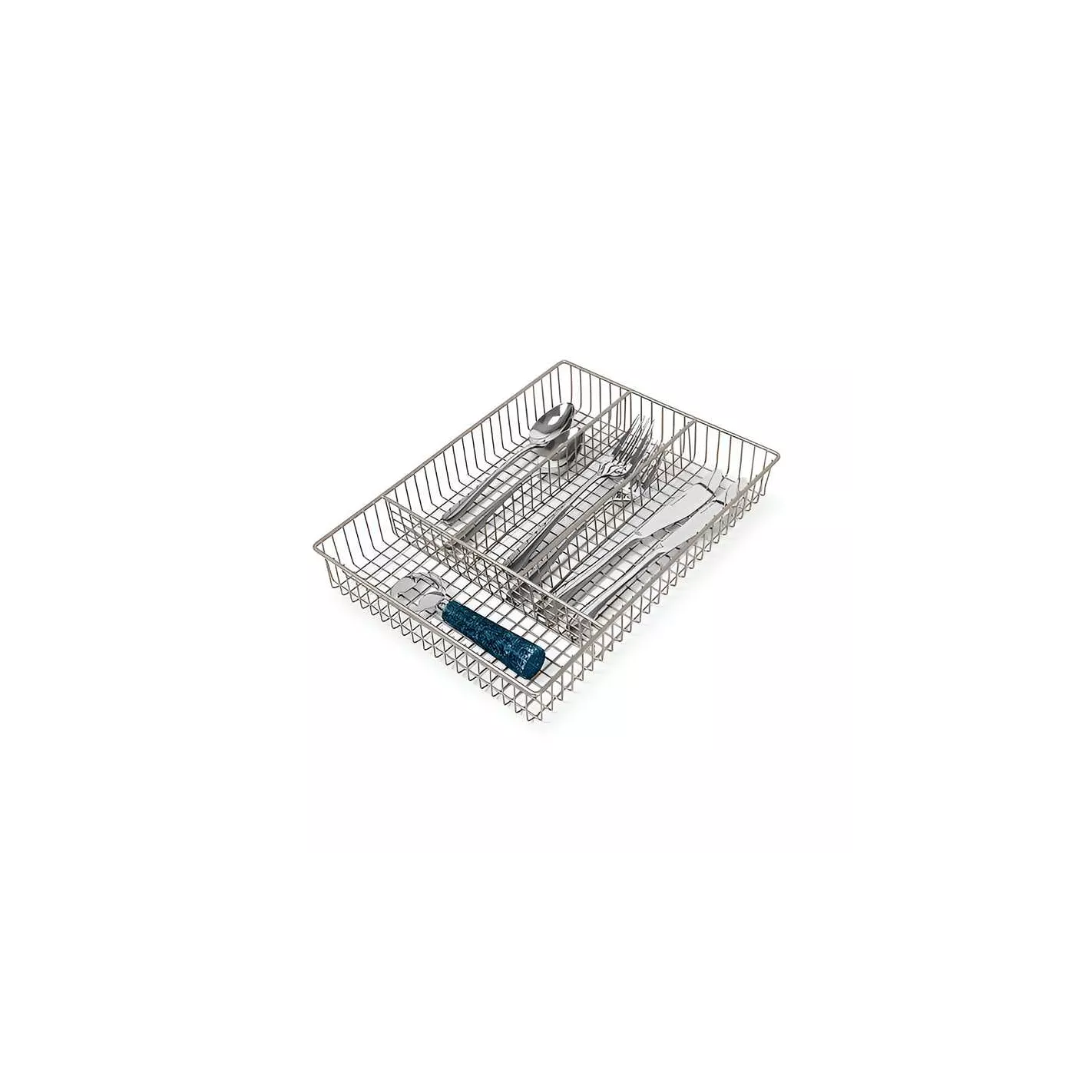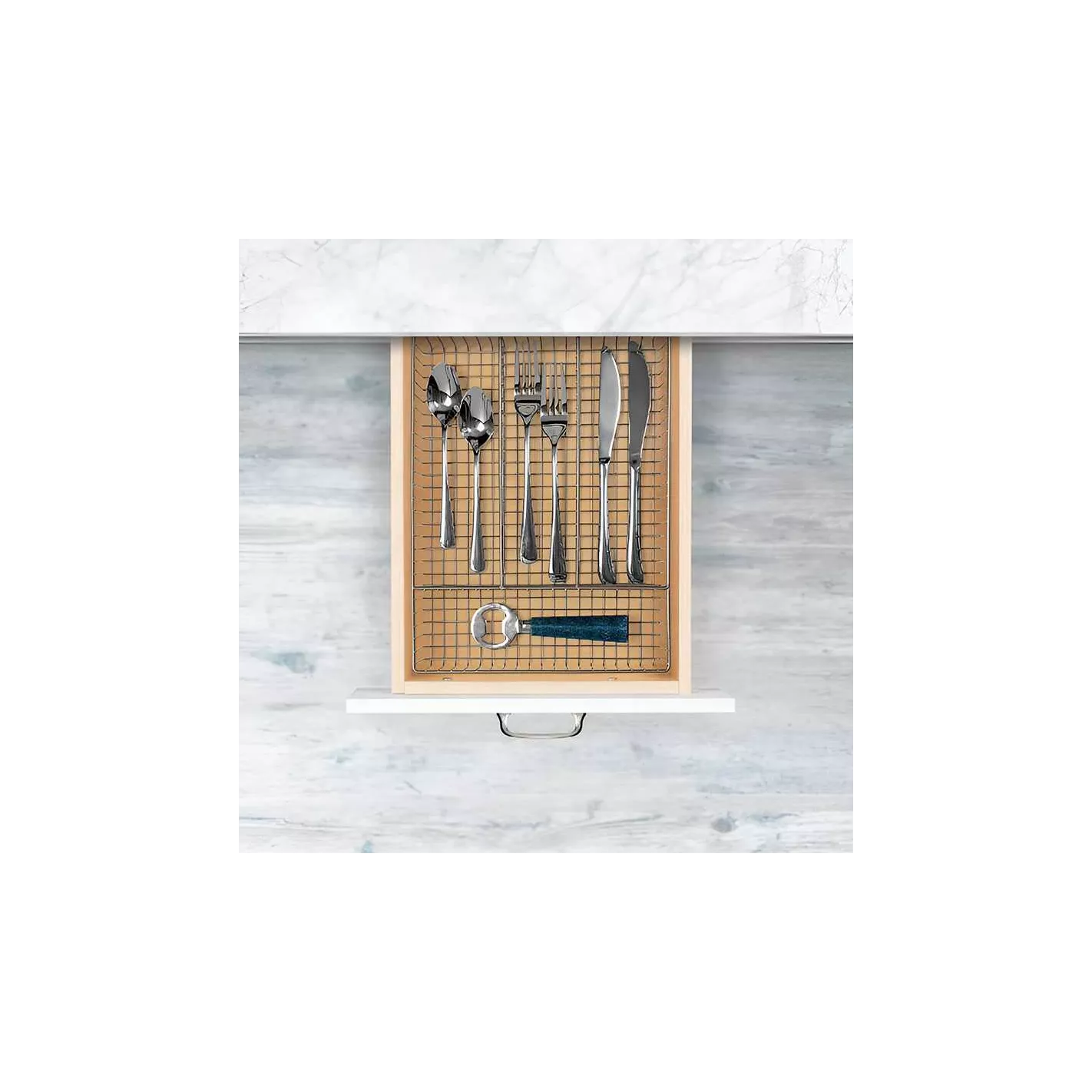 Ordena los cajones de la cocina con esta bandeja compacta para cubiertos. Mantén los cubiertos en compartimentos separados para que sea más fácil agarrar un tenedor, una cuchara o un cuchillo. Nunca más pierdas tu abrebotellas o sacacorchos favorito. Esta bandeja de cuatro secciones también es ideal para organizar los suministros de oficina. El compartimento adicional a lo largo de la parte inferior es perfecto para accesorios de cocina adicionales, como un sacacorchos de vino, un abrebotellas, un pelador de verduras, una espátula u otro utensilio de cocina. La base de acero resistente se asienta de manera uniforme en los cajones de la cocina.