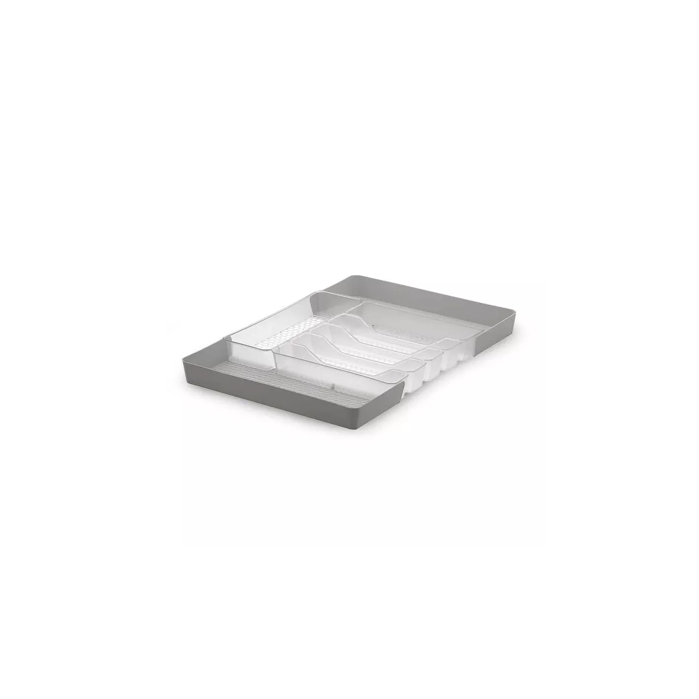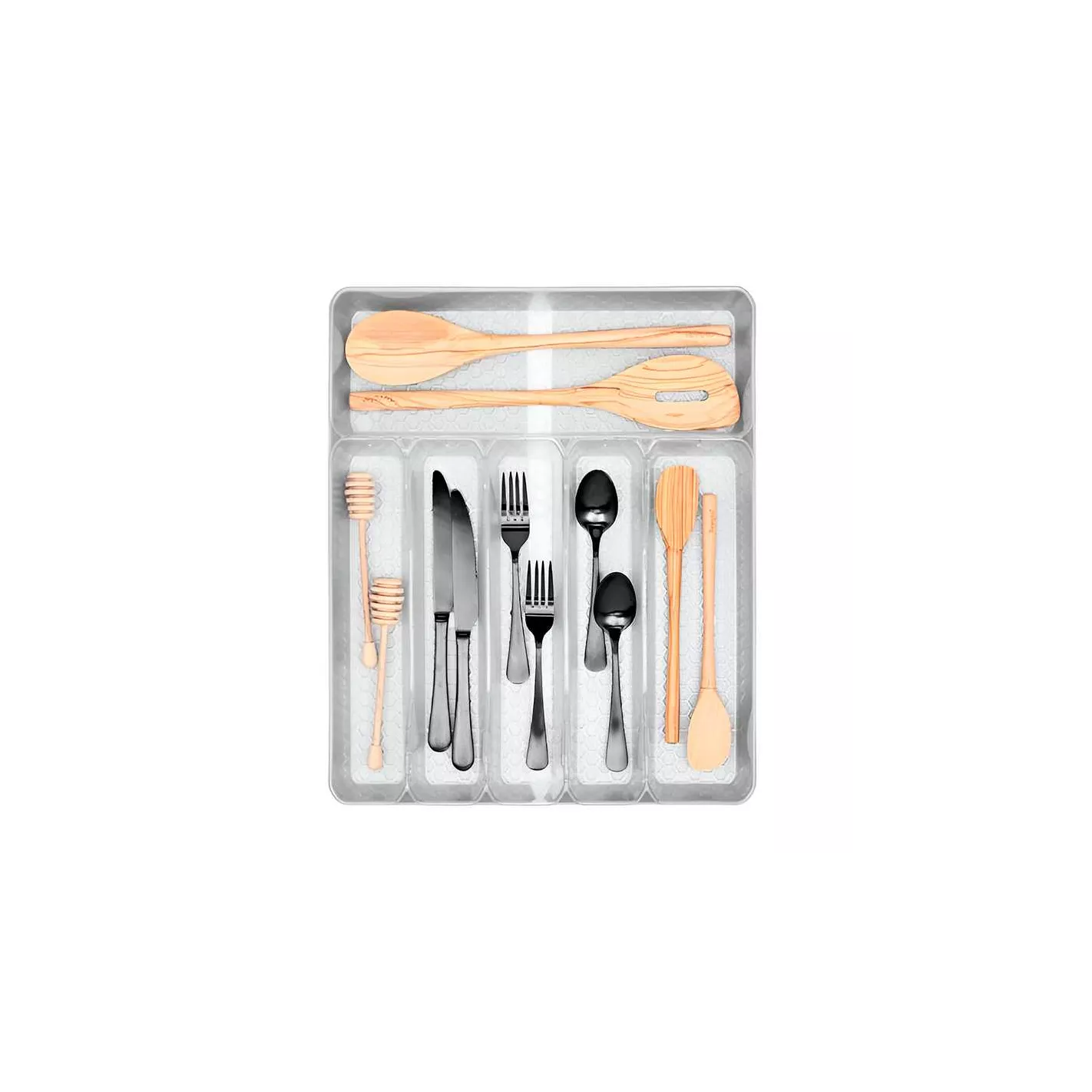 Seis compartimentos brindan mucho espacio para todos sus cubiertos, con divisores curvos para que sea más fácil tomar lo que necesita. Combine la bandeja para cubiertos con otros organizadores de cajones HEXA para guardar aún más elementos esenciales para la cena. Moderno y funcional, el color transparente esmerilado combina con cualquier decoración, mientras que los múltiples compartimentos brindan suficiente capacidad para una variedad de utensilios.
