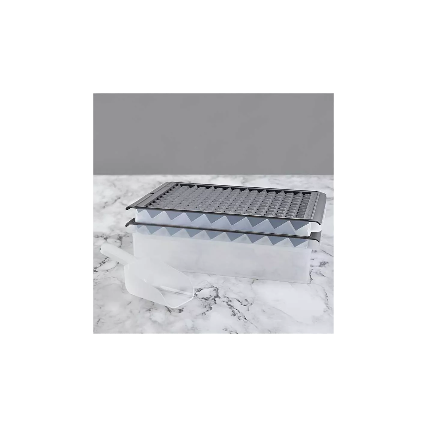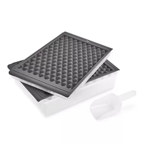 Esta innovadora bandeja para minicubitos de hielo es más fácil de liberar que las bandejas para minicubitos de hielo estándar, es más asequible que las máquinas de hielo y crea minicubitos de hielo para más de 2 bebidas (150 minicubitos de hielo) con un simple giro de la bandeja. Prueba el minicubito de hielo en cócteles, batidos, cafés helados, refrescos y más. El juego incluye dos bandejas con tapa, pala y recipiente de almacenamiento. La tapa y el recipiente de almacenamiento de ajuste hermético sellan el hielo de los olores del congelador, lo que lo mantiene fresco y limpio.