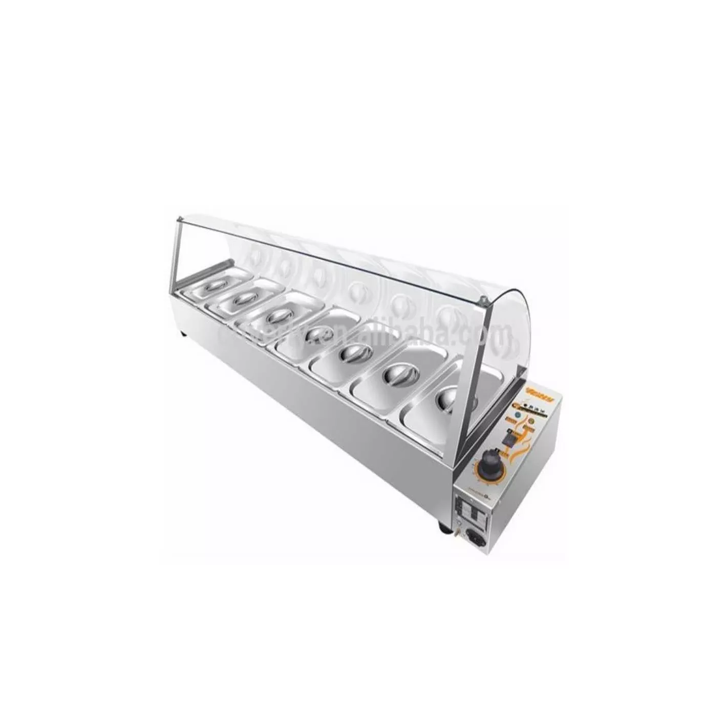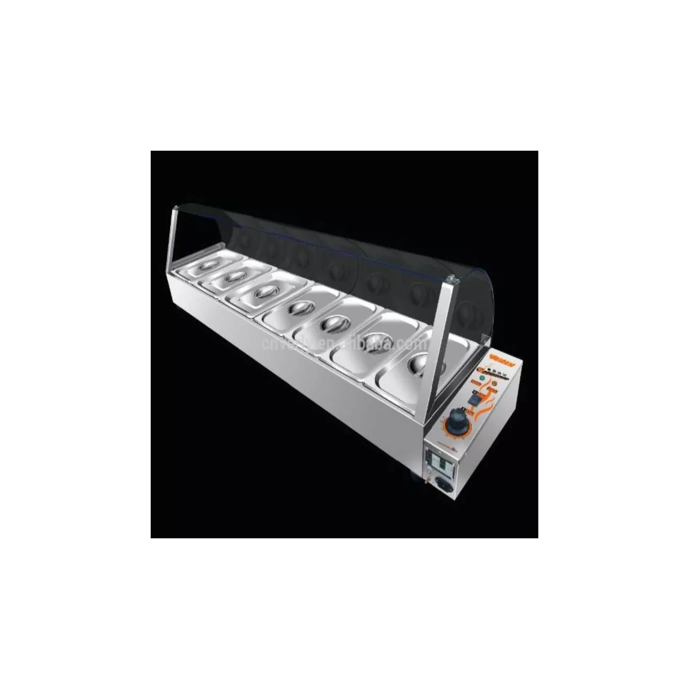 El baño maría eléctrico es una de las nuevas máquinas de comida de estilo en el mercado. Es de fácil limpieza, saneamiento y conveniente para la operación y ahorrar recursos. El calentamiento más rápido, un calentamiento uniforme, duradero, el aislamiento, dispositivo automático de temperatura constante, seguro y confiable.