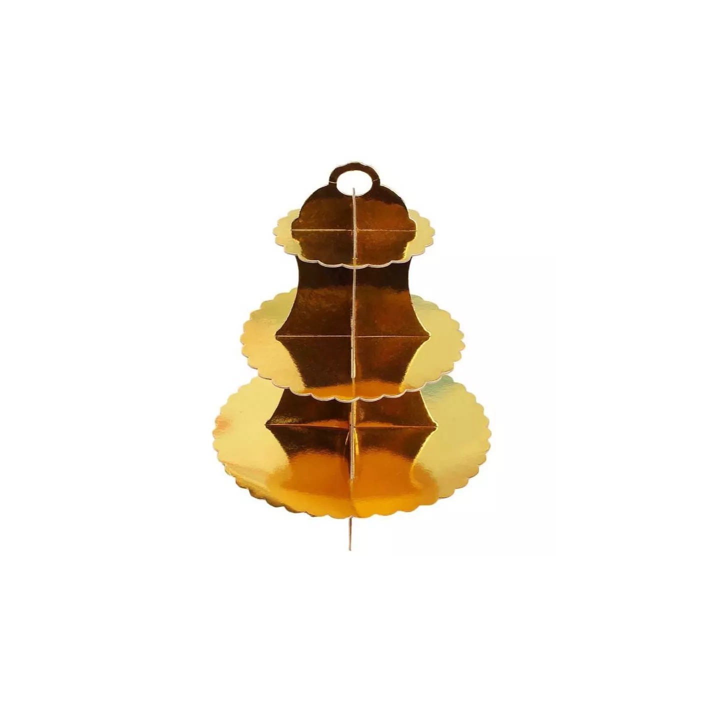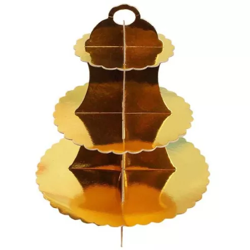 La base de cartón de 3 niveles es una estructura práctica y elegante para exhibir queques, cupcakes y otros postres en celebraciones y eventos especiales. Su diseño resistente y fácil de armar la convierte en una opción ideal para mesas de postres y presentaciones llamativas.