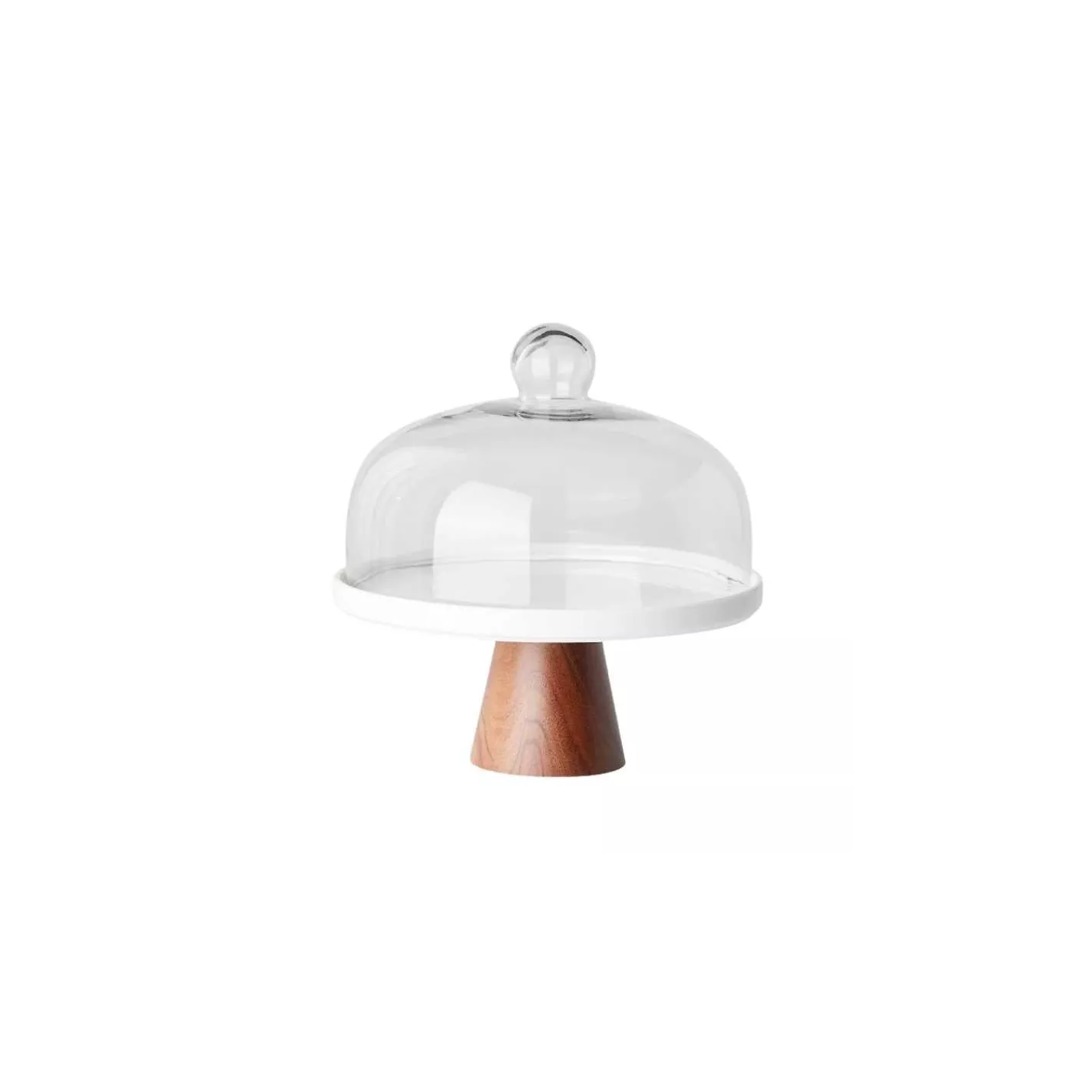 Base de Ceramica Blanca con Pie de Madera de 24 x 10 Centimetros MASTER CHEF CS2118-24