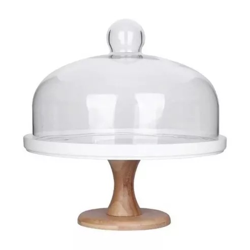 Base de Ceramica de Color Blanco con Pie de Madera de 18 x 12 Centimetros MASTER CHEF CS2121-18