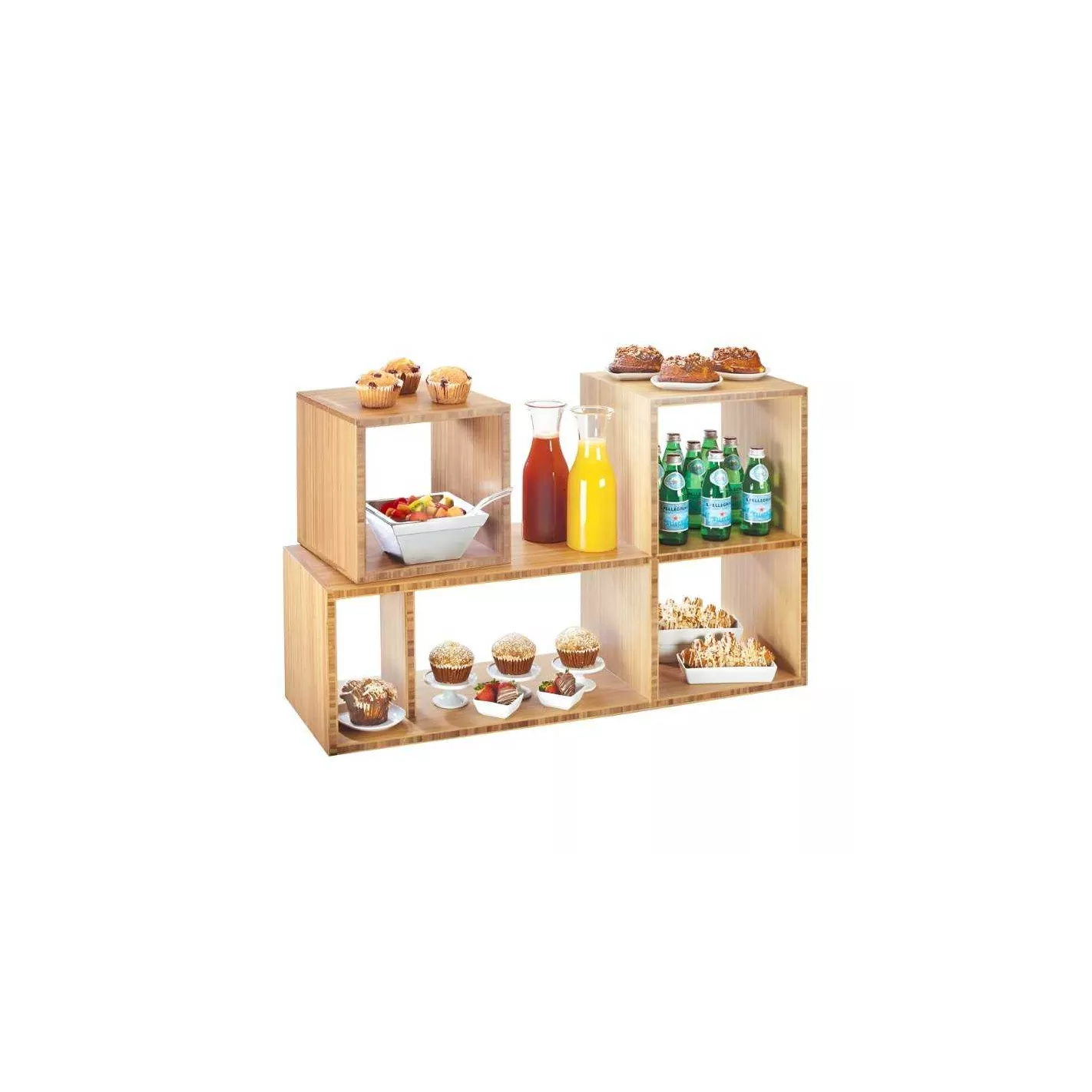 Agregue un efecto personalizado a cualquier presentación de alimentos. Estructura diseñada para mostrar productos de manera atractiva y organizada en espacios comerciales, para exhibir artículos de decoración, utensilios de cocina, productos comestibles, etc.