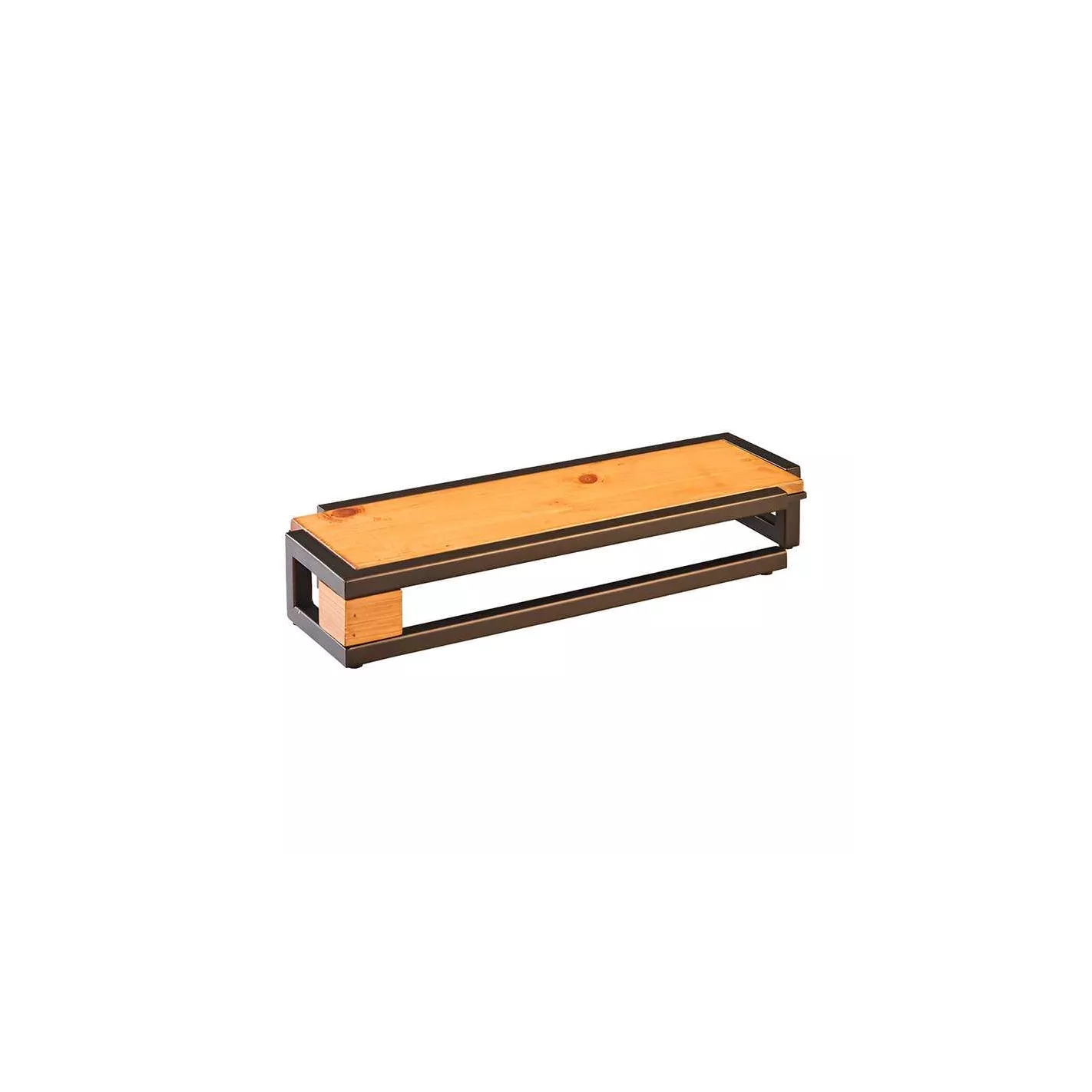Exhiba aperitivos, postres u otros alimentos en está base. Está construido con madera con detalles en metal que ofrece un atractivo rústico. Perfecto para buffets, instalaciones para banquetes o eventos con catering.