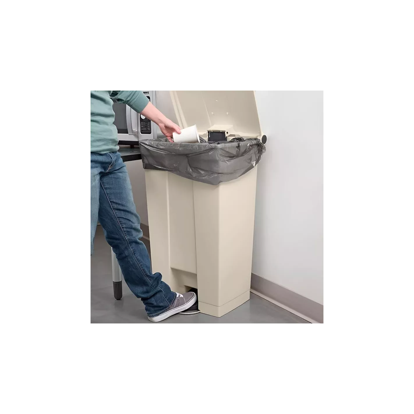Los contenedores plásticos de goma están diseñados para la eliminación de desechos sanitarios sin manos. Al pisar el pedal de servicio pesado se abre la tapa, lo que le permite dejar caer los desechos sin tocar el contenedor. Construcción de plástico resistente y resistente a los pinchazos con esquinas redondeadas y contornos suaves para facilitar la limpieza. Incluye una tapa abatible que contiene olores. Aprobado por FM para seguridad contra incendios.
