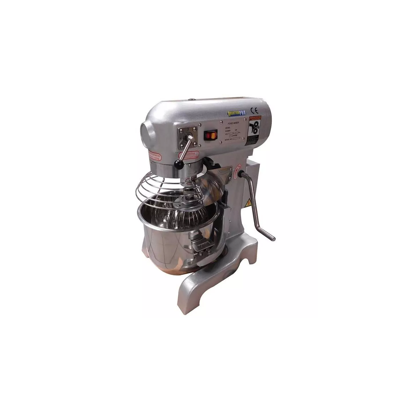 La batidora Quantum Pro incluye: brazo de masa; que se utiliza frecuentemente para masa de pan pesado a baja velocidad, el batidor; comúnmente utilizado para batidos finos, pasteles y puré de patatas a velocidad media y el látigo de alambre; se recomienda para batir crema y huevos a alta velocidad. Es importante recordar detener la máquina para cambiar la velocidad, no mezcle la masa en el medio o alta velocidad. Al mezclar, gire la rueda de mano para levantar el bowl hasta que sienta que toca el detener, esto también hace que el recipiente sea más accesible para el llenado. Después de mezclar, gire la rueda de mano para bajar el tazón. Es necesario bajar el bowl para cambiar los agitadores.
