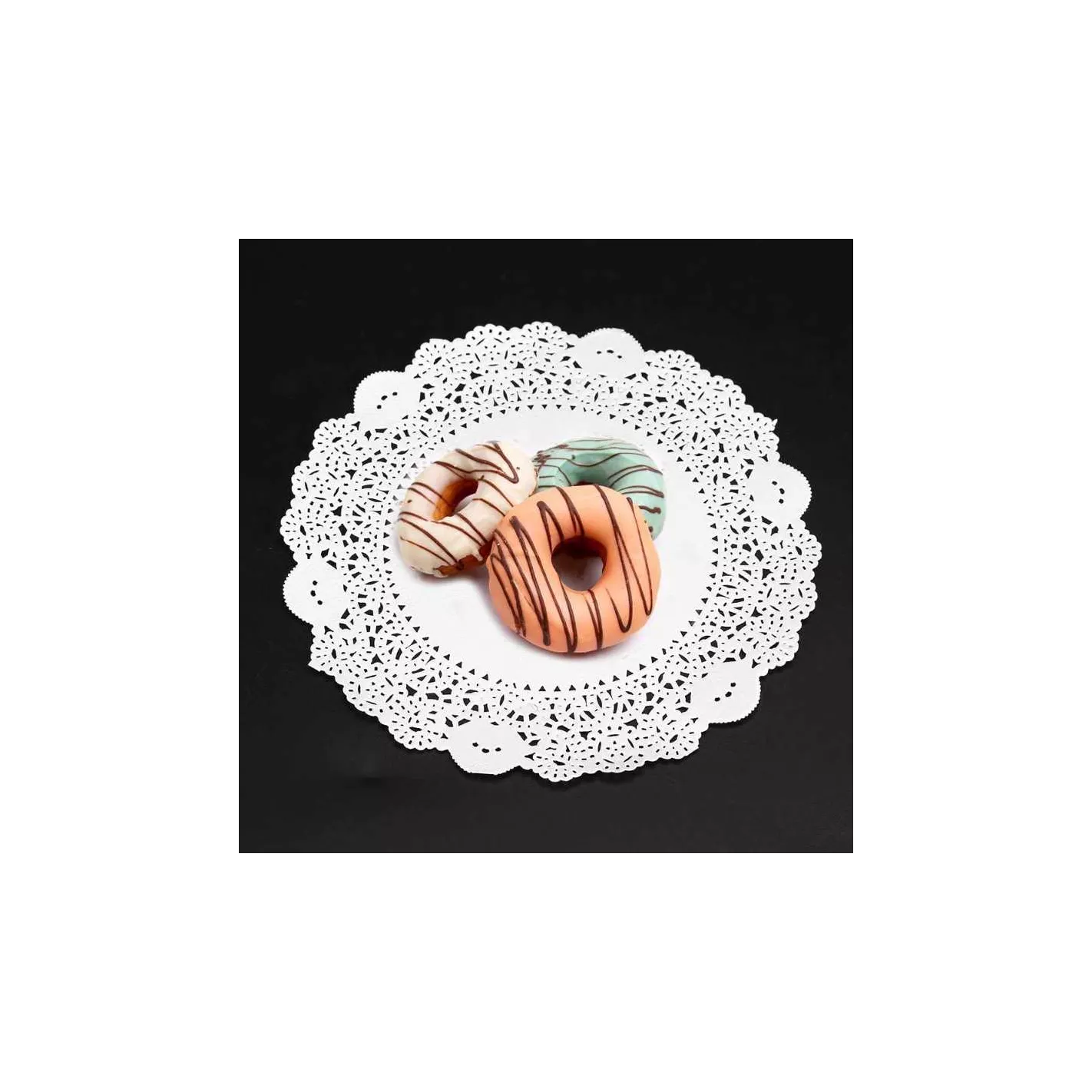Hecho de materiales de papel de alto grado, sin sustancias nocivas, mano de obra exquisita, delgada pero sólida. Diseño elegante, agregue un toque de fantasía a los platos de galletas y pasteles. Multifunción. Se puede usar como almohadillas de pastel, almohadillas de comida, colocar en bandejas, bajo vasos de jugo, etc. Es ideal para proyectos de arte, adecuado para cumpleaños, fiestas, bandejas de bodas, platos, bandejas, decoración de mesas, etc.COLOR: BLANCO