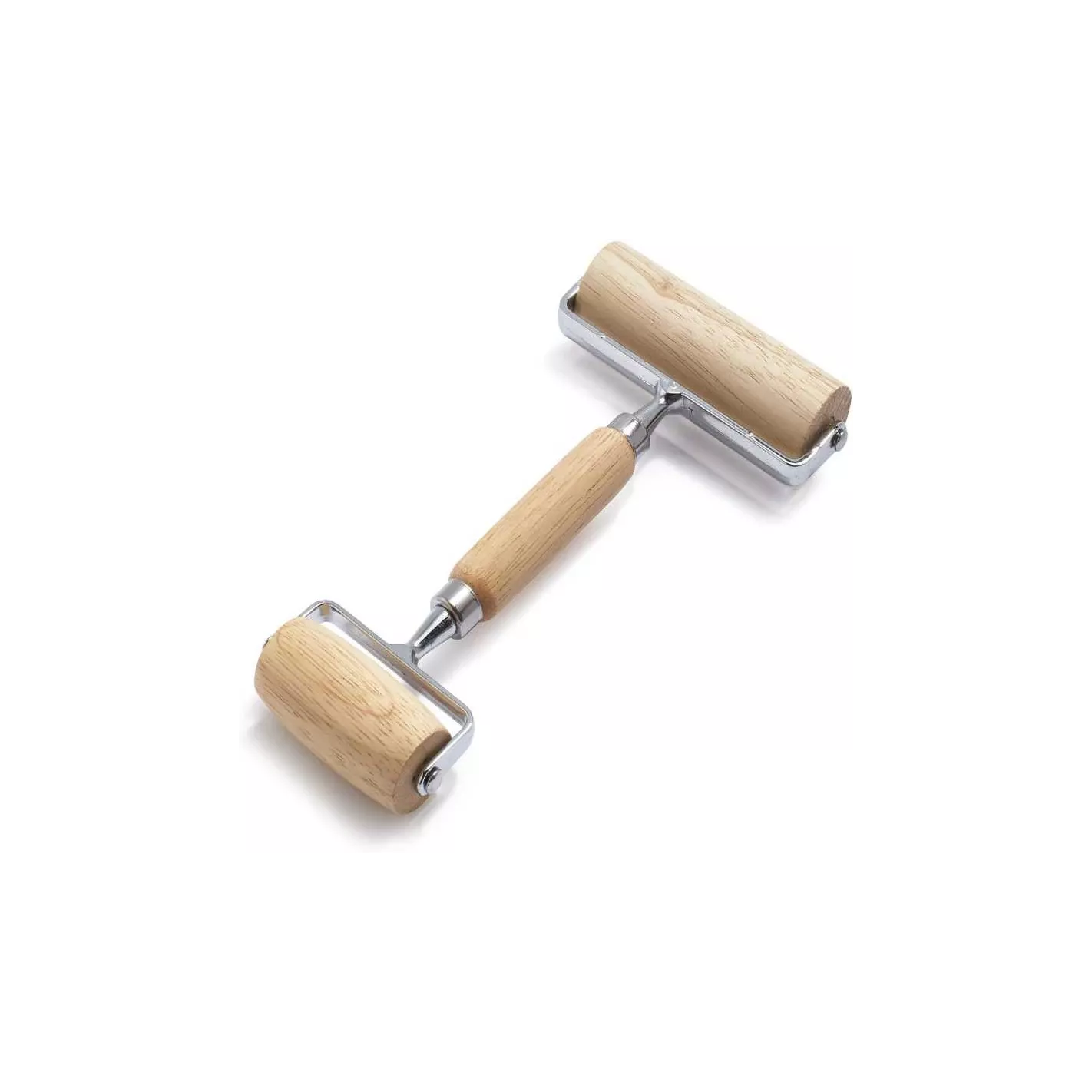 Bolillo Doble de Madera para pastelería. El Norpro Pastry / Pizza Roller es la herramienta 2 en 1 perfecta para pasteles, galletas y masa para pizza. El rodillo grande rueda suavemente la masa, creando una corteza uniforme.Fácil de usar en su tabla de cortar o directamente en la sartén. El rodillo pequeño facilita el llenado de masa en los bordes, suaviza los bordes y los costados, y garantiza una profundidad uniforme alrededor del borde interior de la sartén. Las varillas de aleación de zinc equilibran los rodillos de madera