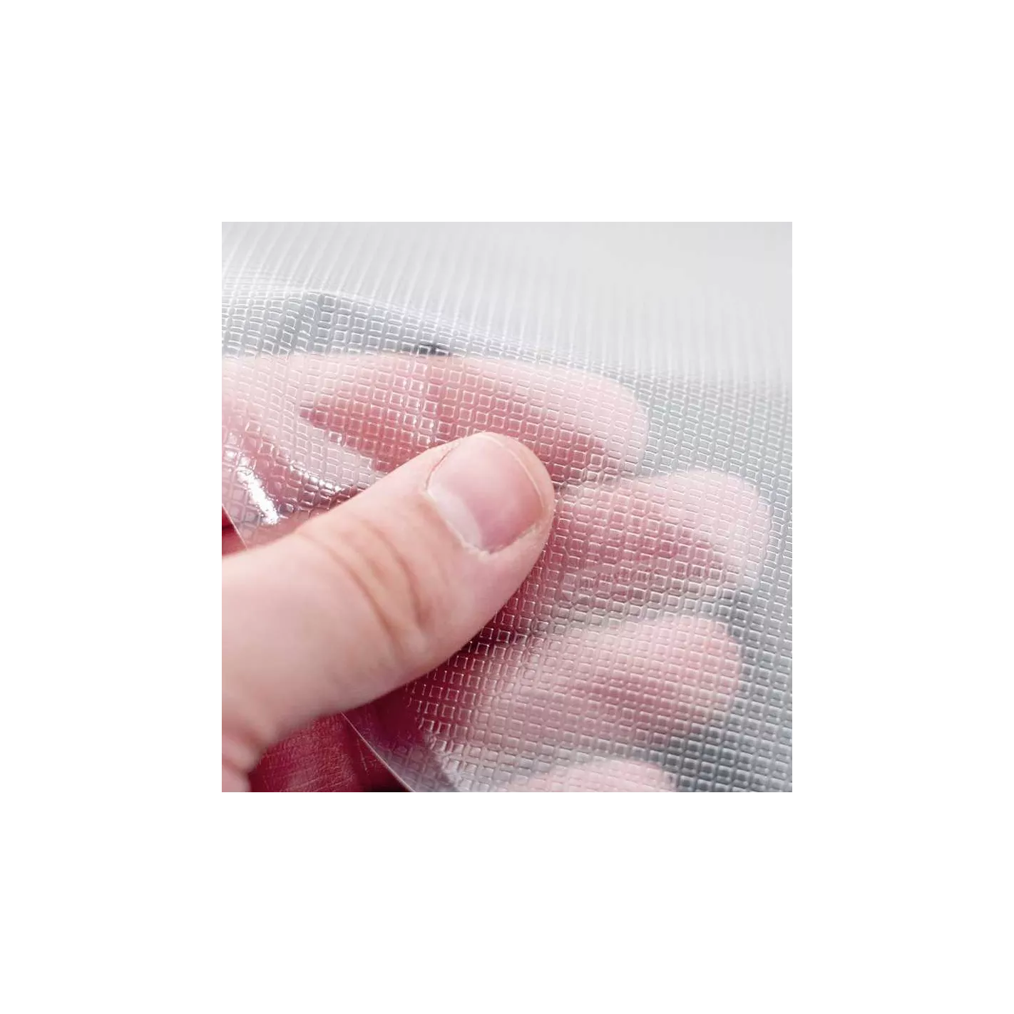 Bolsas gofradas adecuadas para envasadoras de vacío de succión externa. Apto para todos los dispositivos con bolsas externas. Estas bolsas de vacío gofradas pueden soportar la cocción al vacío en altas temperaturas. Ventajas del envasado al vacío. Productos más frescos. Hace que los productos duren hasta 5 veces más. Ahorra tiempo y dinero.