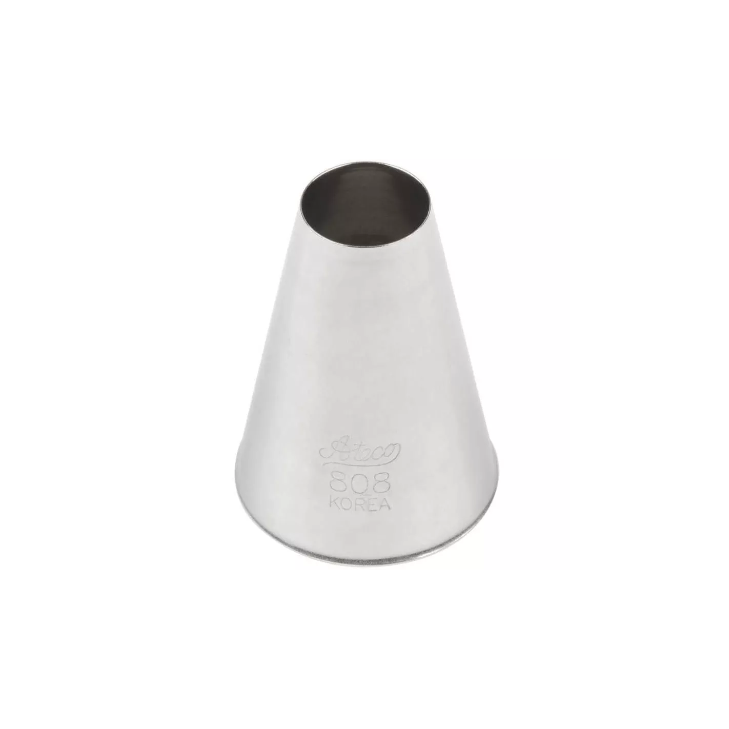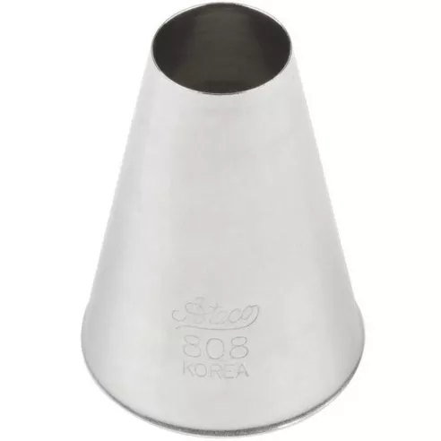 Decora tus pasteles, magdalenas, galletas y tartas con esta boquilla para pastelería # 808. Hecho de acero inoxidable duradero, esta boquilla es resistente a la oxidación y está diseñado para soportar el uso repetido sin doblarse. Tiene una punta lisa puede crear diseños de bordes lisos ideales para crear dollops, diseños de espirales anchos y rellenar macarons o cannolis