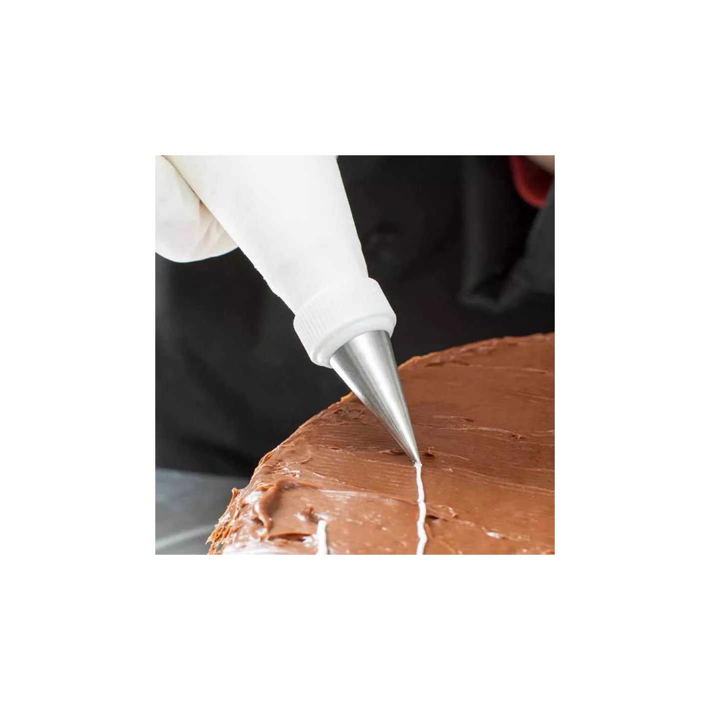 Decora tus tartas, cupcakes, galletas y tartas con este tubo de pastelería simple Ateco 000. Hecho de acero inoxidable duradero, este tubo es resistente a la oxidación y está diseñado para resistir el uso repetido sin deformarse. Con una punta lisa, puede crear patrones de bordes suaves ideales para crear una sola cucharada de glaseado o diseños de remolinos anchos. Este consejo también es ideal para rellenar macarrones y cannolis sin ensuciar.