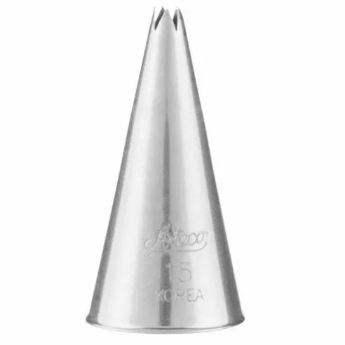 Decora tus pasteles, magdalenas, galletas y tartas con esta boquilla para pastelería #15. Hecho de acero inoxidable duradero, esta boquilla es resistente a la oxidación y está diseñado para soportar el uso repetido sin doblarse. Tiene una punta lisa, puede crear patrones de bordes suaves ideales para crearpalabras con glaseado o diseños de escritura gruesa.