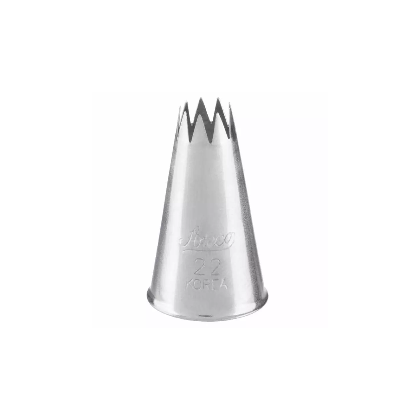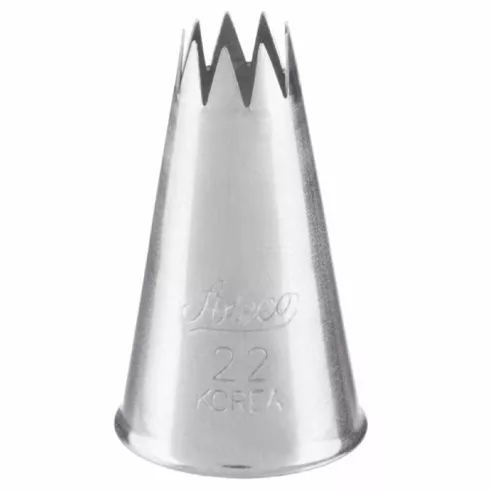 Agregue fácilmente glaseado con dibujos ligeramente acanalados a sus pasteles, magdalenas, tartas y más con esta boquilla de pastelería estrella abierto #22. Hecho de acero inoxidable duradero, esta boquilla es resistente a la oxidación y está diseñado para resistir el uso repetido sin deformarse. Con una punta de estrella abierta, puede crear conchas, estrellas, flores de lis, rosetas y flores. El diseño de estrella abierta produce una textura sutil ideal para una presentación suave. También es compatible con el acoplador Ateco 400 y el acoplador Ateco 407, lo que facilita el cambio de puntas sin cambiar la manga pastelera. El uso de la boquilla de pastelería del tamaño adecuado para el trabajo mejorará su presentación para llamar la atención de los clientes hacia sus vitrinas y postres.