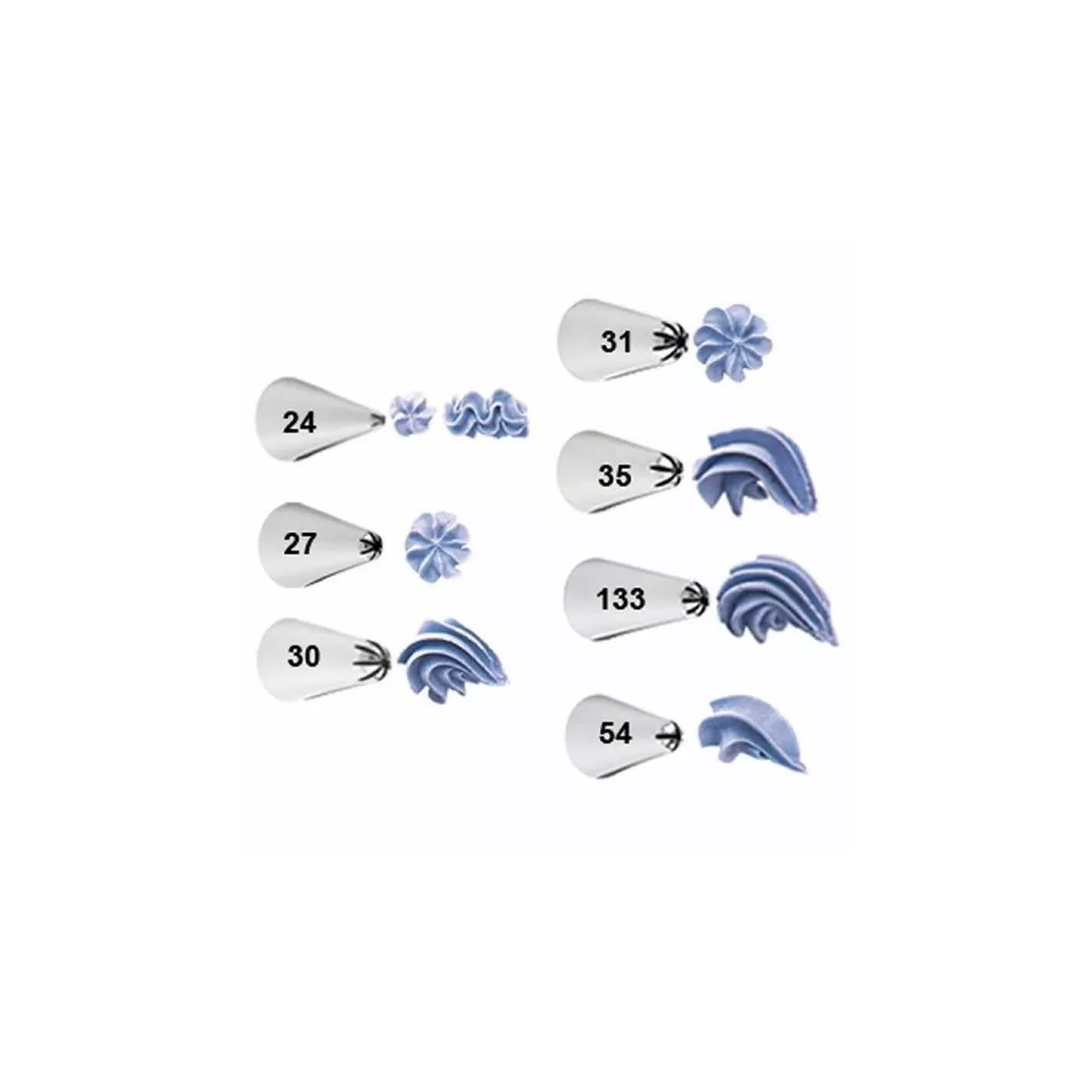 Decora tus pasteles, magdalenas, galletas y tartas con esta boquilla para pastelería Ateco 30. Hecho de acero inoxidable duradero, esta boquilla es resistente a la oxidación y está diseñado para soportar el uso repetido sin doblarse. Tiene una punta lisa, puede crear patrones de bordes suaves ideales para crear una sola cucharada de glaseado o diseños de remolinos anchos.