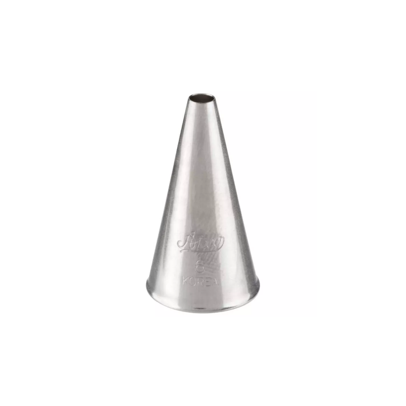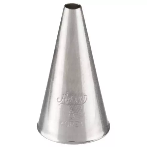 Decora tus pasteles, magdalenas, galletas y tartas con esta boquilla para pastelería Ateco 6. Hecho de acero inoxidable duradero, esta boquilla es resistente a la oxidación y está diseñado para soportar el uso repetido sin doblarse. Tiene una punta lisa, puede crear patrones de bordes suaves ideales para crearpalabras con glaseado o diseños de escritura gruesa.