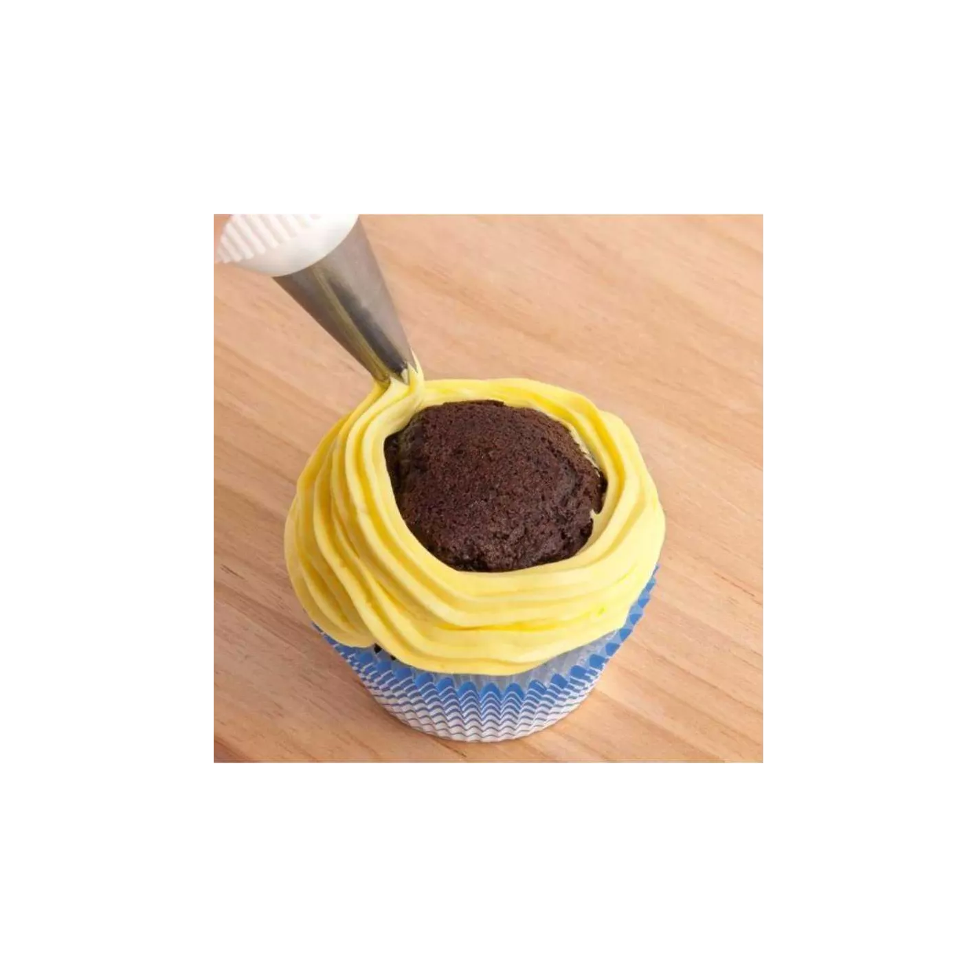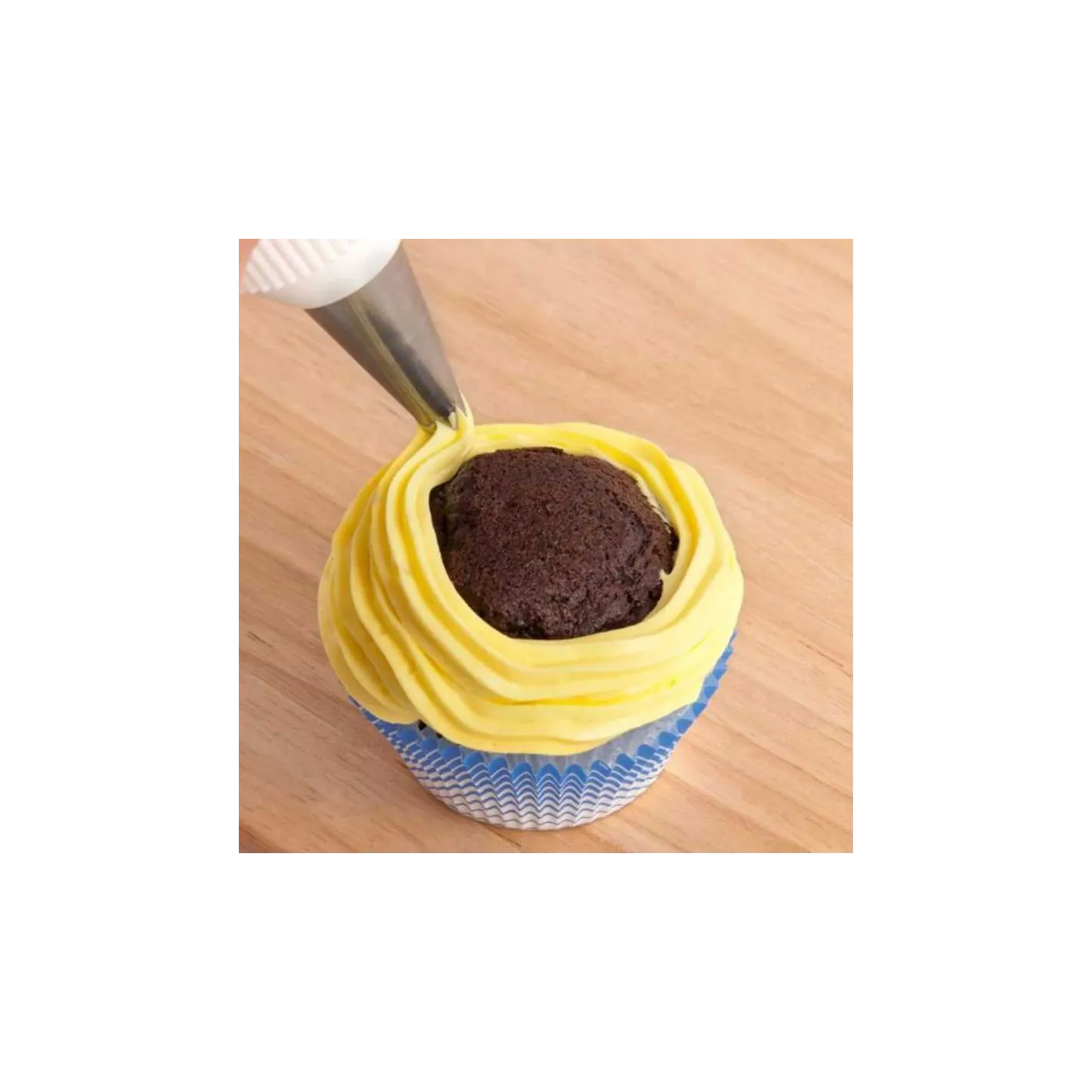 Ideal para decorar cupcakes, pasteles, postres y galletas. Se recomienda lavar a mano o con cepillo para boquillas. Definitivamente una herramienta que no puede faltar en sus utensilios de decoración.