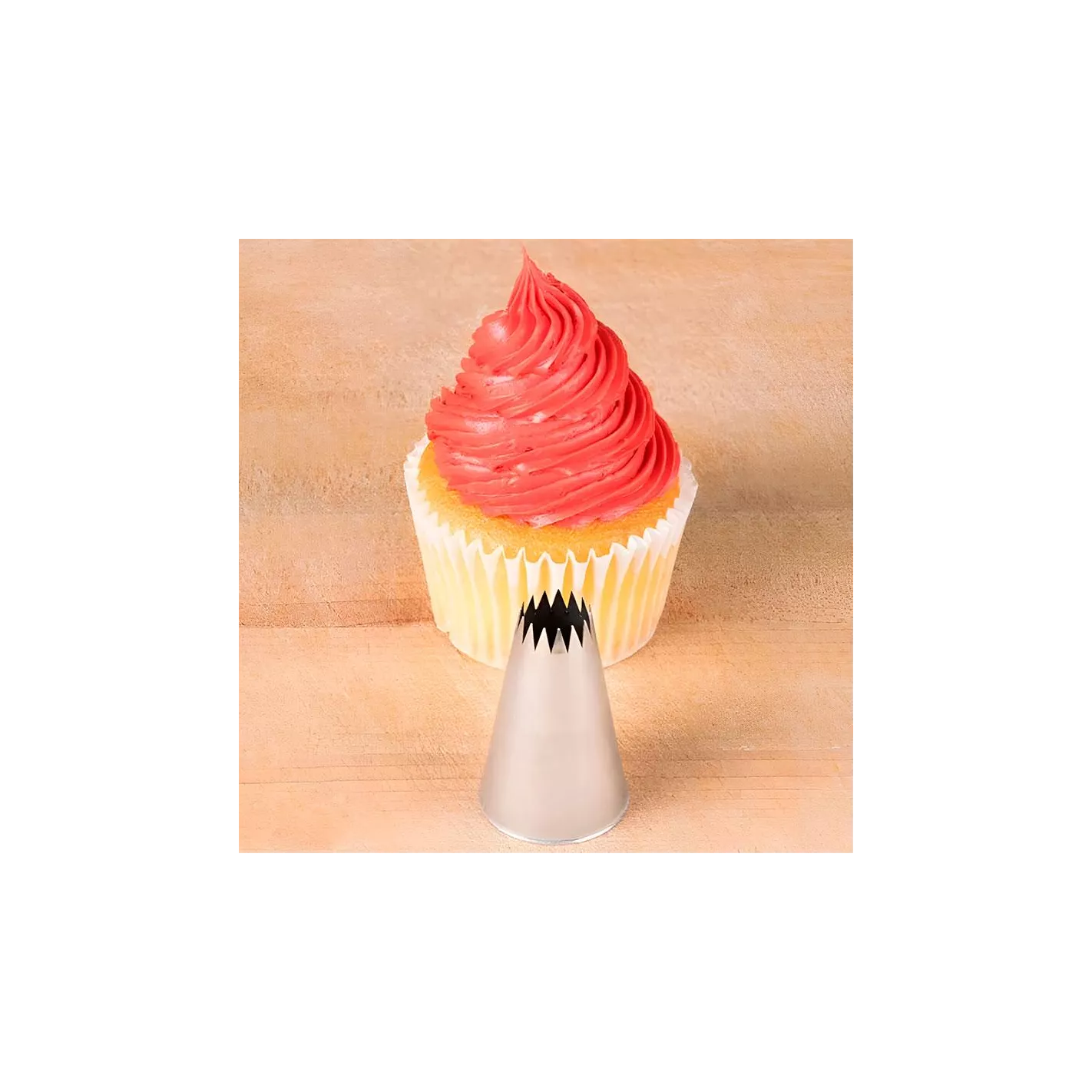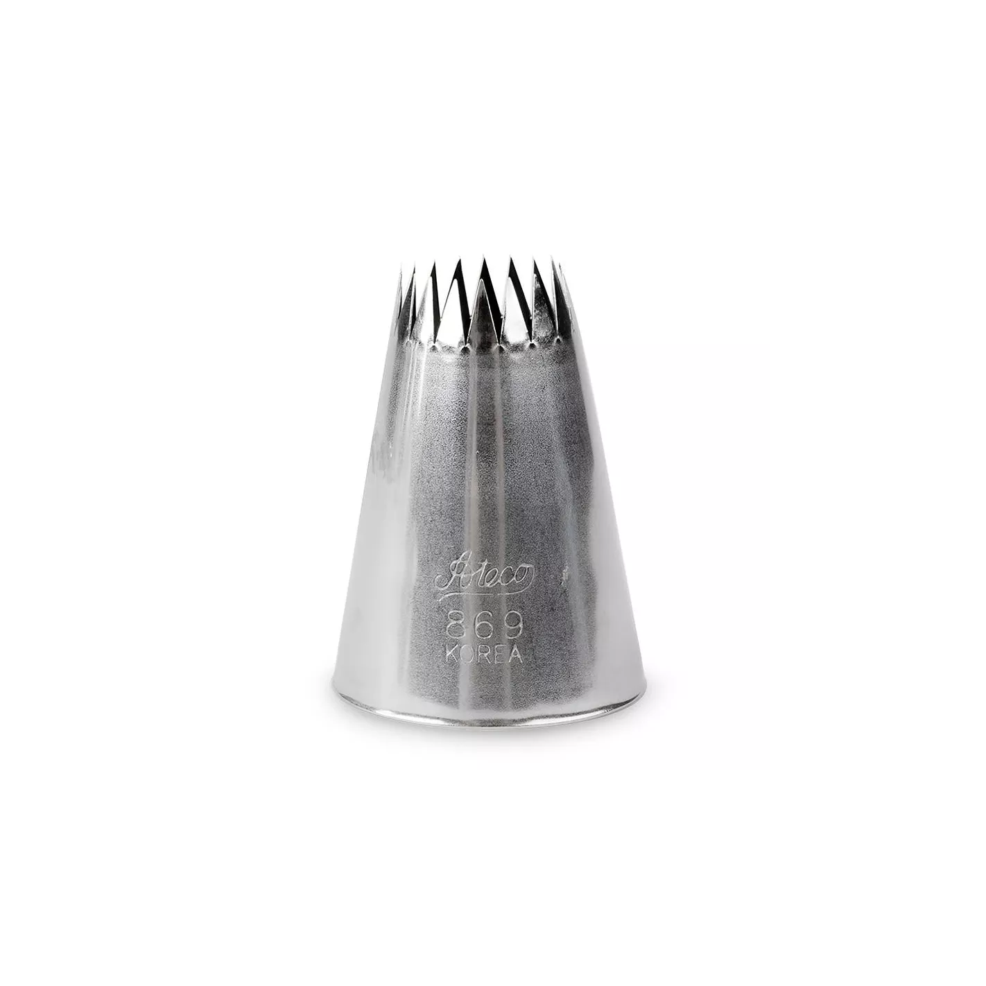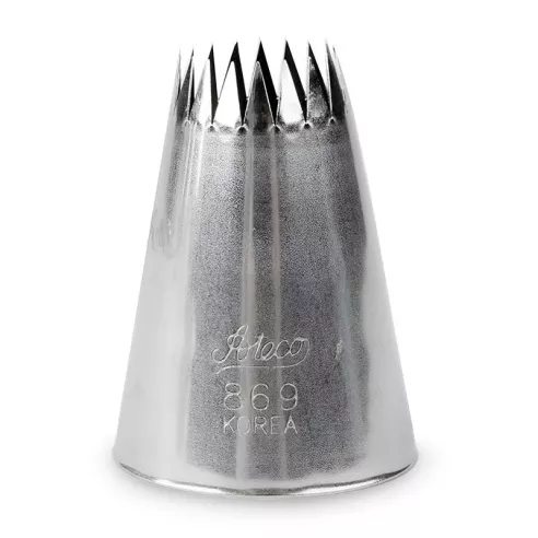Agregue patrones de glaseado finos y profundamente ranurados a sus pasteles, magdalenas, pasteles y más con esta boquilla de pastelería de estrella francesa #869 de 11/16 pulgadas. Hecho de acero inoxidable duradero, esta boquilla es resistente a la oxidación y está diseñado para soportar el uso repetido sin doblando fuera de forma. Con una estrella francesa, punta, puede crear conchas, estrellas, flores y diseños festoneados. Además, su gran tamaño es perfecto para glasear creaciones de repostería de forma rápida y eficiente. También es compatible con el acoplador Ateco 404 y El acoplador Ateco 407 facilita el cambio de puntas sin cambiar la bolsa de pastelería. El uso de la boquilla de pastelería del tamaño correcto para el trabajo mejorará su presentación para atraer la atención de los clientes a sus vitrinas y postres chapados.