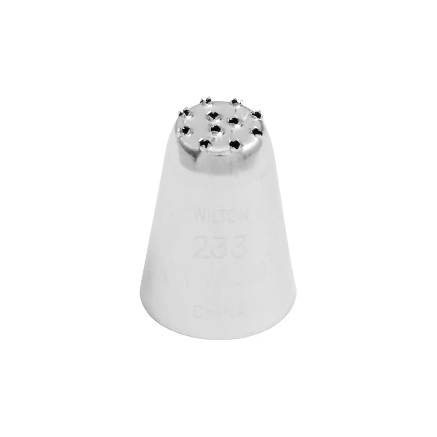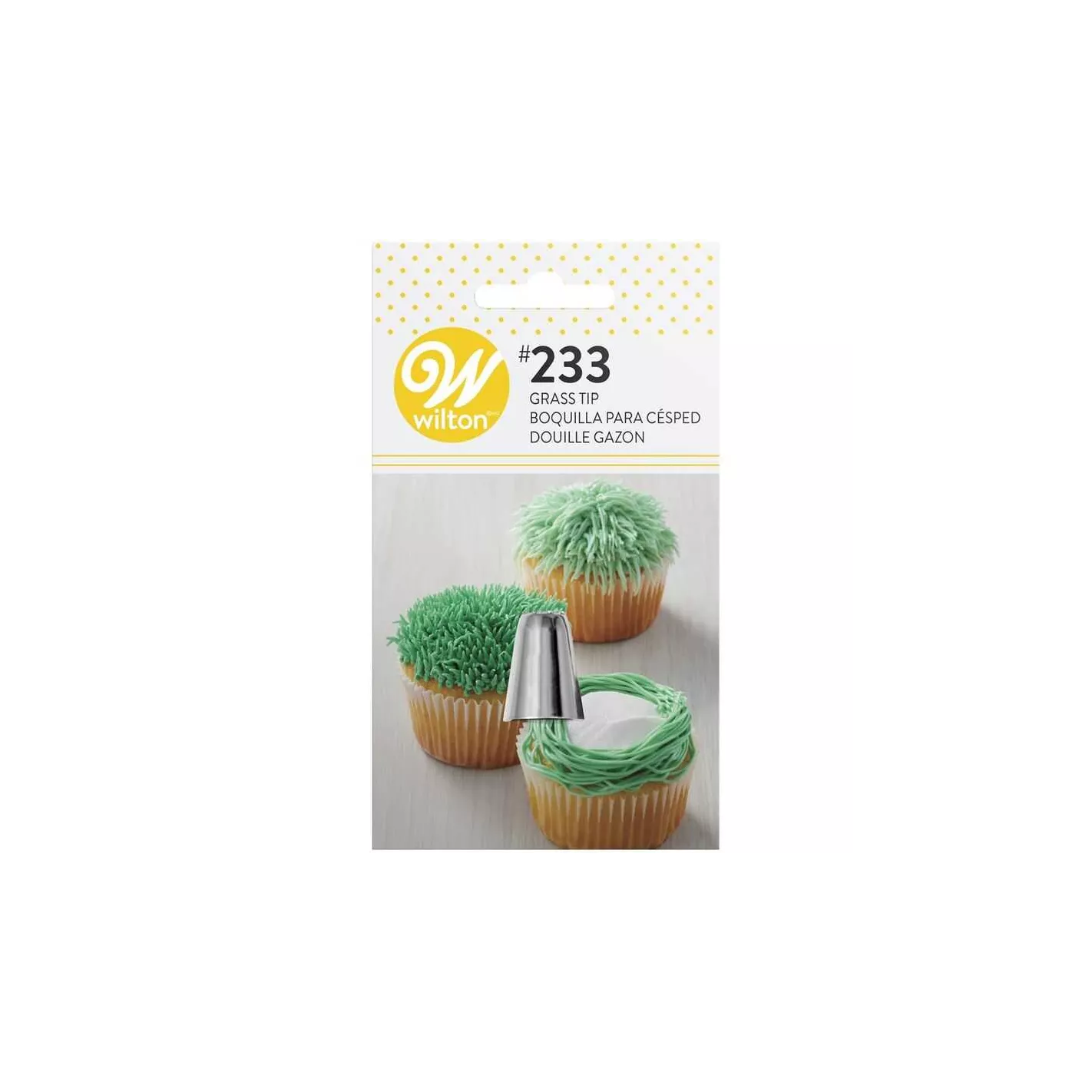 Use la boquilla versátil #233 para hacer pasto, cabello o varias hileras de cuerdas delgadas con esta boquilla de apertura múltiple. Las boquillas de decoracíón Wilton son las mejores del mercado, utilizadas por decoradores de todo el mundo. Están hechas para mantener su forma y crear decoraciones precisas año tras año. Esta boquilla simplemente se atornilla a la manga de decoración Wilton y le facilitará crear diseños de gran apariencia en sus pasteles en minutos.