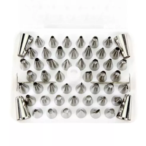 Este set de 52 boquillas para decorar es ideal para los amantes de la repostería y la pastelería. Cada boquilla está diseñada para facilitar la creación de elaborados diseños en pasteles, cupcakes y otros postres, permitiendo una gran variedad de estilos y acabados. Fabricadas con materiales de alta calidad, son duraderas y fáciles de limpiar, lo que las convierte en una herramienta esencial para cualquier chef o aficionado a la cocina.