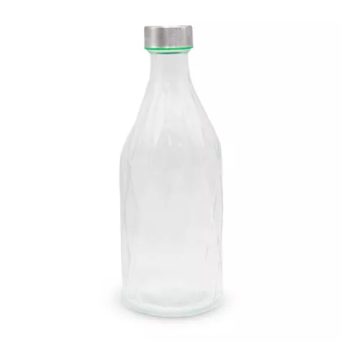 Práctica botella de vidrio con tapa rosca, ideal para llevar tu agua o jugo a todos lados, usar botellas de vidrio para el agua es beneficioso tanto para la salud como para el medio ambiente, excelente para tu nevera.
