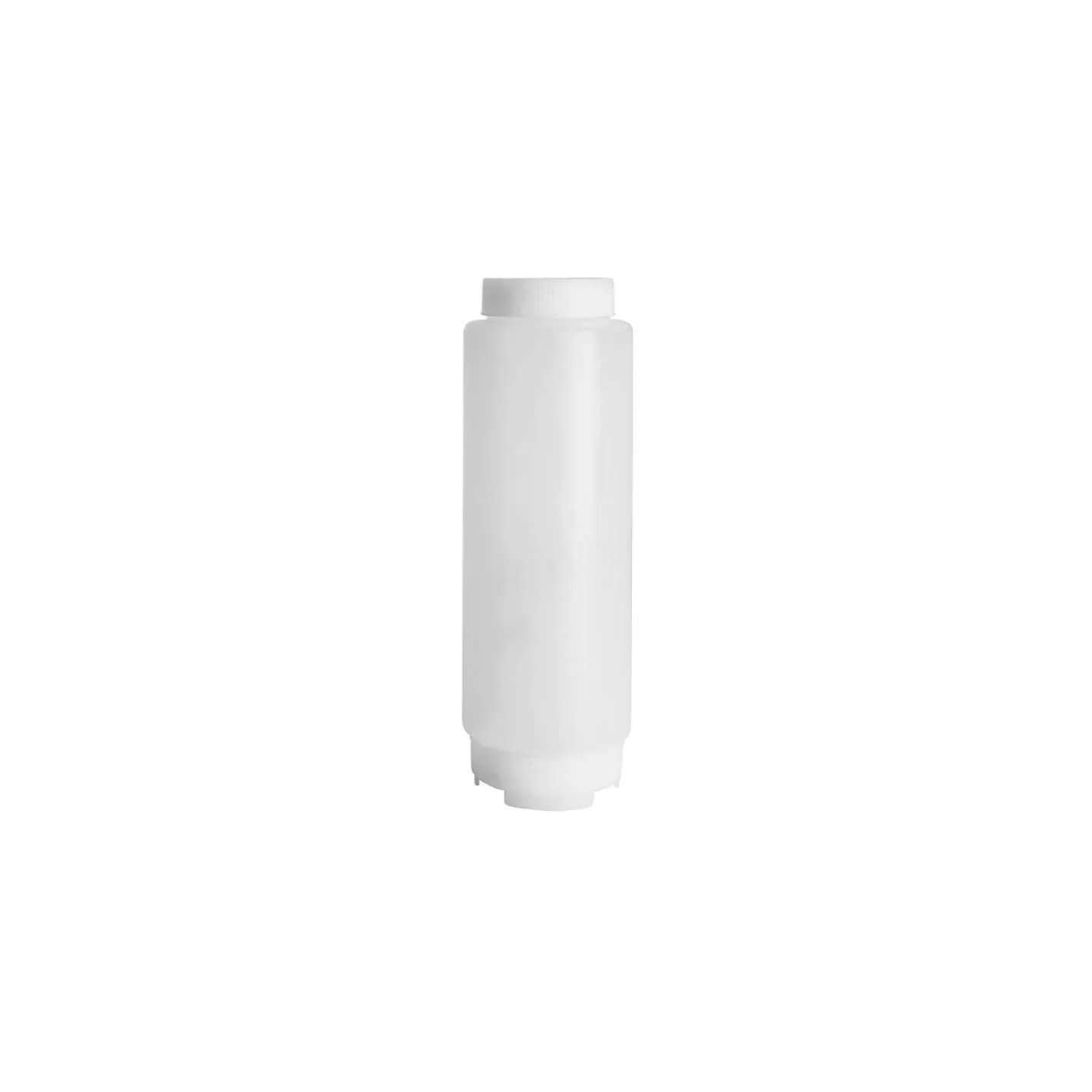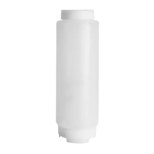 La botella de salsas tipo fifo esta diseñada para locales comerciales donde las salsas juegan un papel importante, viene con una tapa en su parte superior la cual distribuye la salsas de forma uniforme y otra tapa en su parte baja la cual se quitara para poder llenarlo o rellenarlo para que siempre este la botella a full.