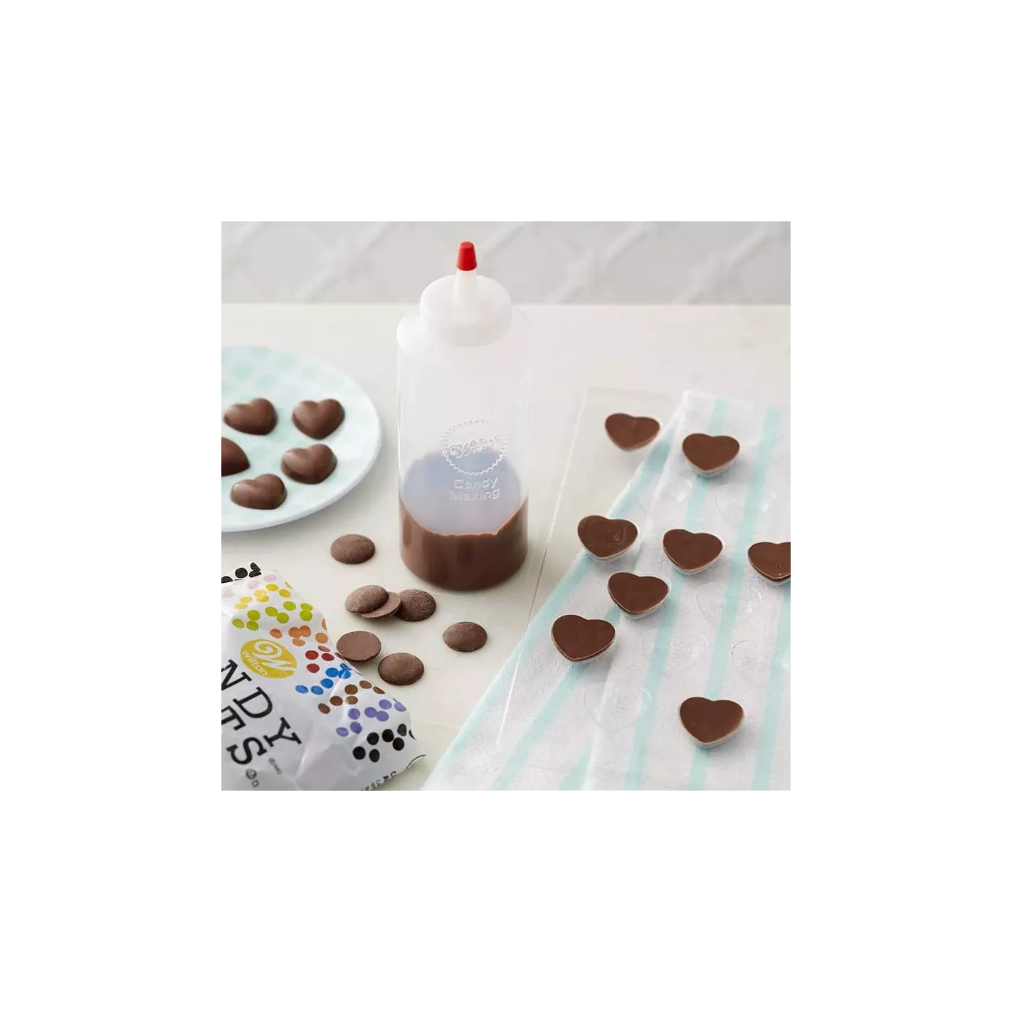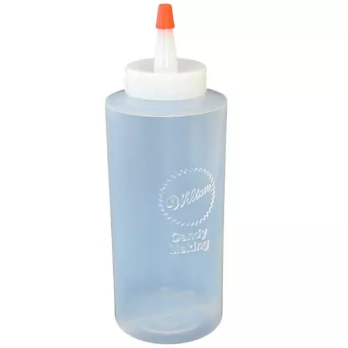 Con esta práctica botella exprimible puede crear todo tipo de diseños divertidos en dulces moldeados, galletas, pastelitos y brownies usando el caramelo derretido Candy Melts . Úselo para dibujar y canalizar líneas, remolinos, puntos, escritura y más. Simplemente derrita los dulces de acuerdo con las instrucciones del paquete y viértalo en la botella.