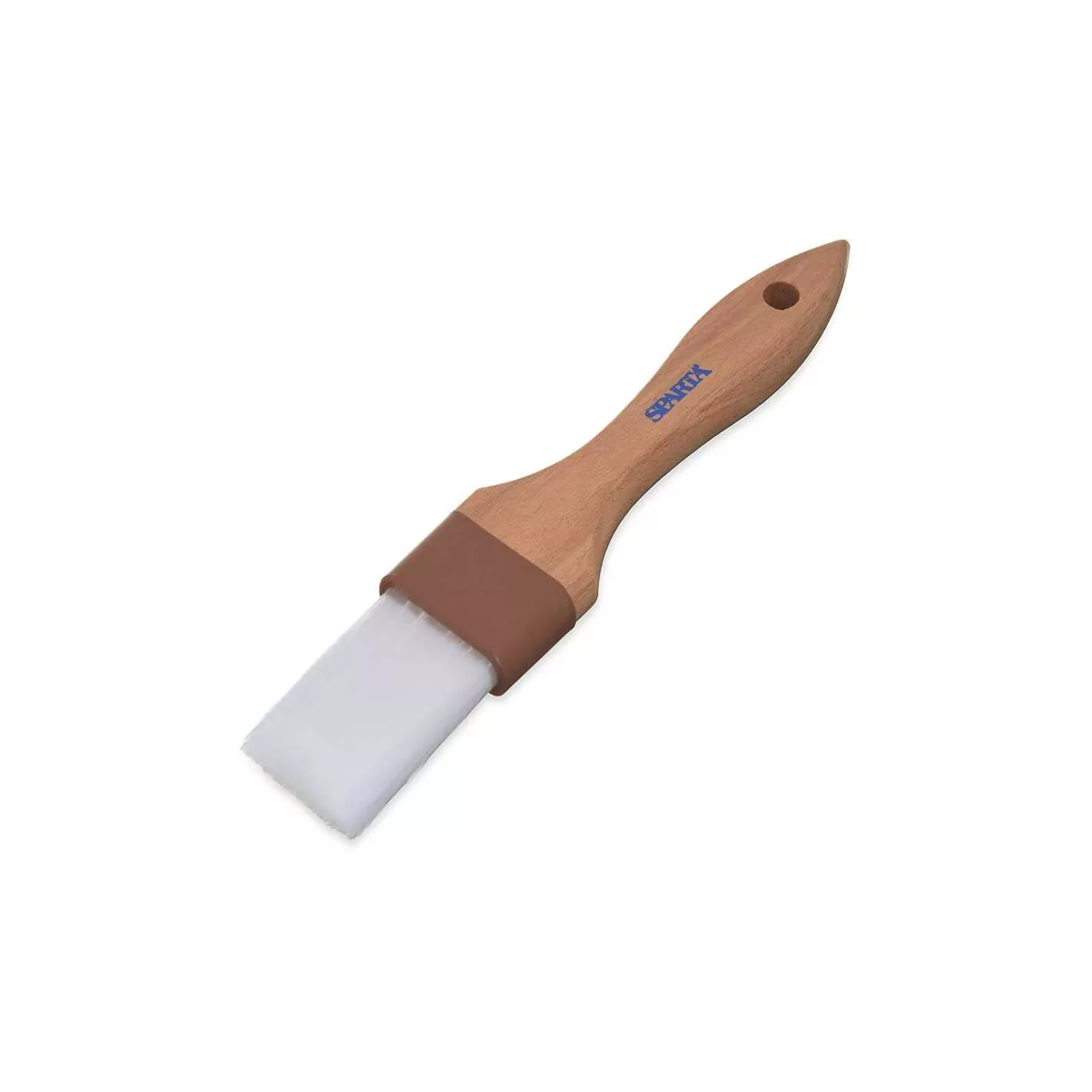Pruebe esta brocha de nylon en su restaurante, cafetería o panadería para ayudarlo a hacer deliciosamente pasteles dorados y productos horneados con facilidad. Estas cerdas tienen una alta capacidad de retención de líquidos, por lo que si sumerge esta brocha en agua, huevo o mantequilla, funciona para dispensar cada líquido de manera uniforme sobre sus pasteles en lugar de absorberlo en las cerdas. Con esta brocha puedes asegurarte de tu comida alcance una corteza dorada en todo momento. El diseño cónico de 1 1/2 pulgadas de ancho y las cerdas del borde de la brocha también funciona para proporcionar una cobertura uniforme con cada trazo de esta brocha. Gracias a su tamaño más pequeño, esta brocha es útil para otras tareas específicas de la cocina , como sellar los bordes de pasta rellena o pierogis.