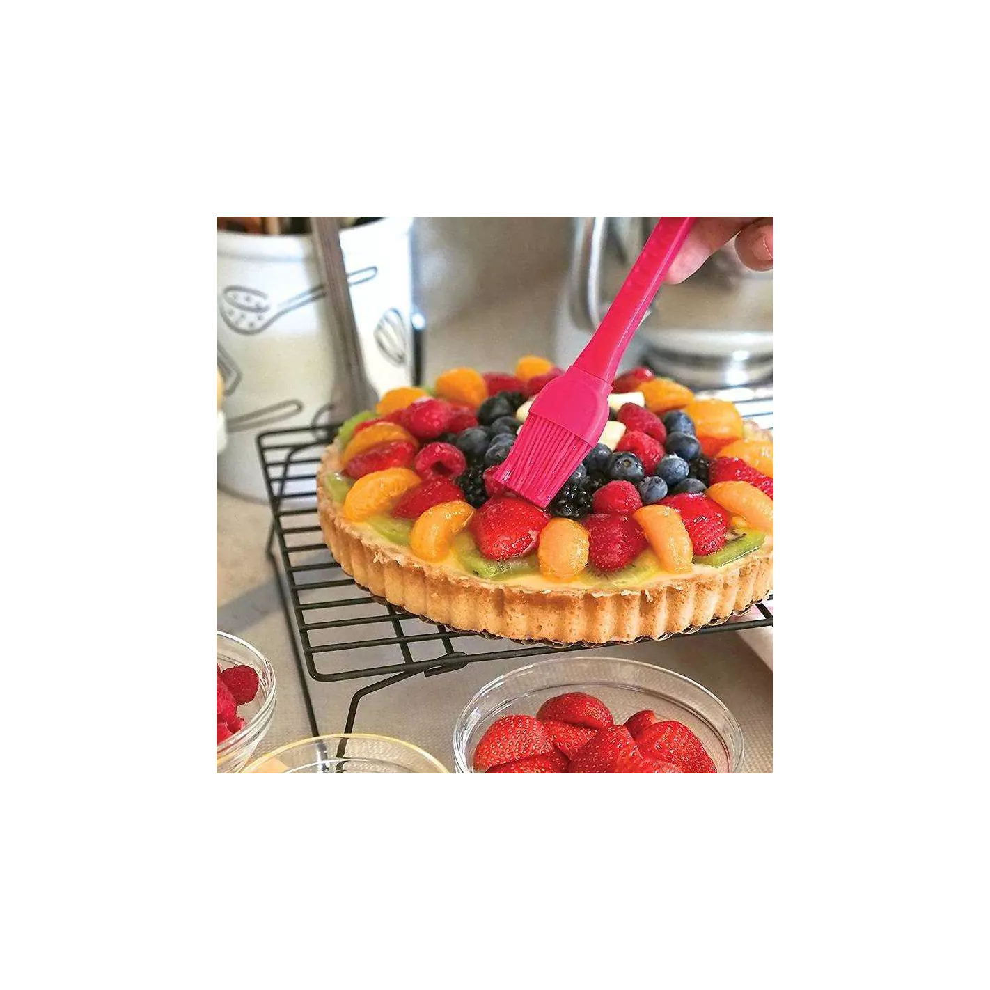 ¿Quién no querría agregar un color brillante y alegre a su cocina? De la colección de frambuesas de Fox Run, estos elementos esenciales de cocina de alta calidad cuentan con un hermoso color rosa intenso, que se asemeja a frambuesas perfectamente maduras. Nuestro cepillo de pastelería Raspberry presenta una cabeza de silicona con un mango de plástico PP antideslizante con textura. Las cerdas de silicona son fáciles de limpiar, resistentes a las bacterias, resistentes al calor y no retienen olores, no se caen ni se aglomeran durante la limpieza. Este cepillo es ideal para alcanzar grietas difíciles, esparcir fácilmente el lavado de huevos, esparcir aceite o mantequilla en una sartén caliente y rociar un pavo directamente del horno. Simplemente coloque en el lavavajillas para limpiar. ¡Rocía y cubre más fácilmente con nuestro Pincel para pasteles de frambuesa, o ilumina tu cocina con nuestro juego completo!
