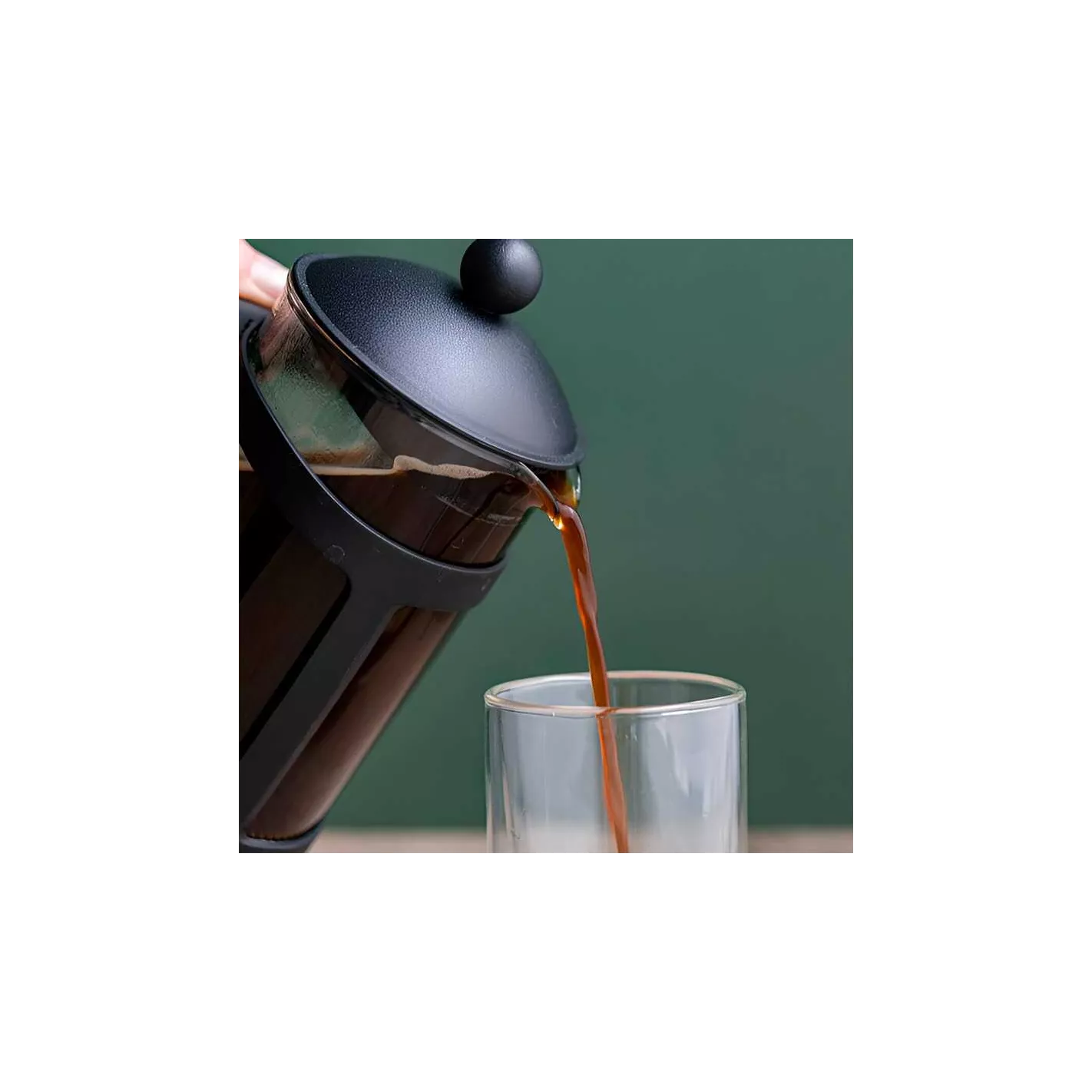 Esta cafetera negra de gran valor está hecha de plástico resistente con una jarra de vidrio. El soporte de plástico libre de BPA es liviano y a prueba de golpes, y cuenta con un asa de forma cómoda para ayudarte a obtener el vertido perfecto. La jarra está hecha de vidrio de borosilicato de alta calidad, que es resistente al calor y al choque térmico para un uso duradero y sin preocupaciones. Por último, pero no menos importante, cuenta con un filtro de acero inoxidable de malla fina, que garantiza un sabor suave y rico en cada preparación. Es resistente al óxido, reutilizable y extraíble para una limpieza fácil.CAPACIDAD: TAZAS = 8