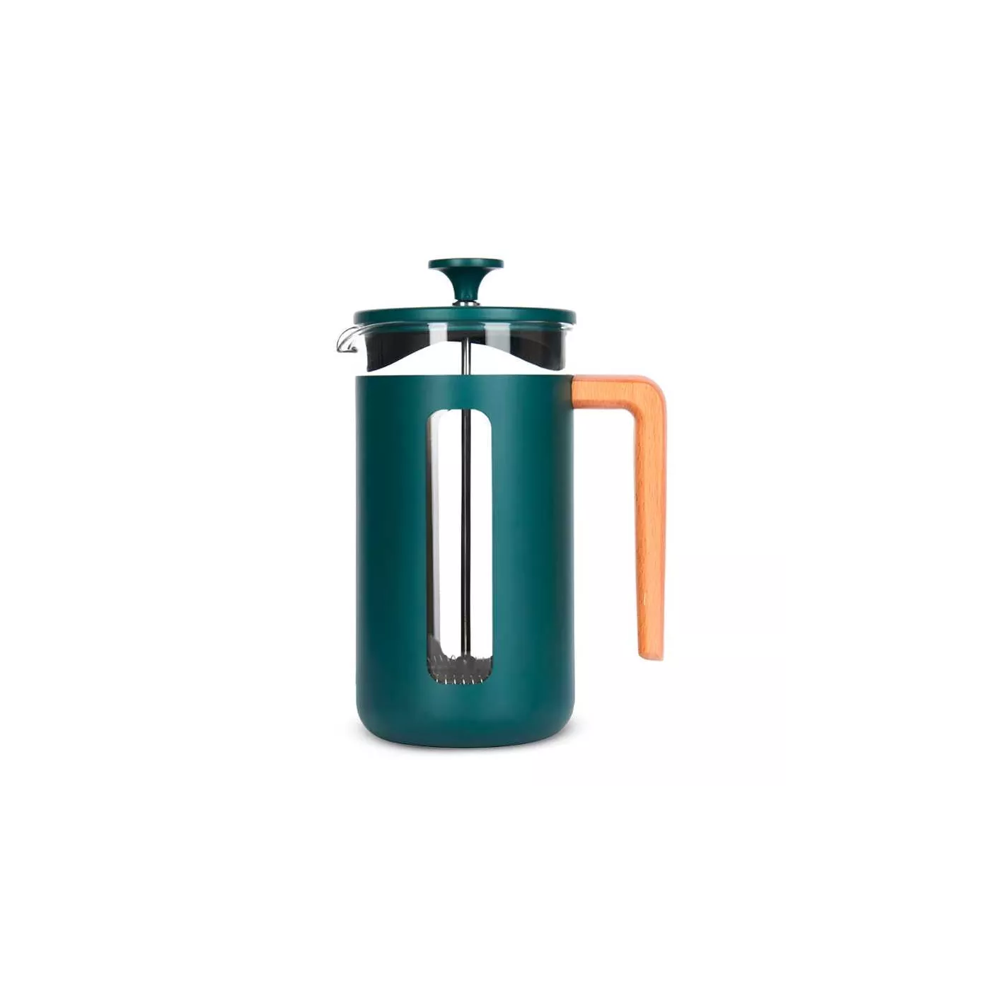Esta cafetera ecológica cuenta con un elegante marco de acero, una jarra perfectamente transparente y un mango de madera de haya natural y suave. Es una llamativa combinación de lo tradicional y lo contemporáneo, al igual que la ciudad que la inspiró. Por supuesto, también hace un café excelente. Simplemente llena la jarra de vidrio de la cafetera con tus posos de café favoritos, déjalos en remojo en agua caliente y luego sumérgelos. Su filtro de acero inoxidable de malla fina atrapa eficazmente los posos para obtener resultados suaves en todo momento.CAPACIDAD: TAZAS = 8