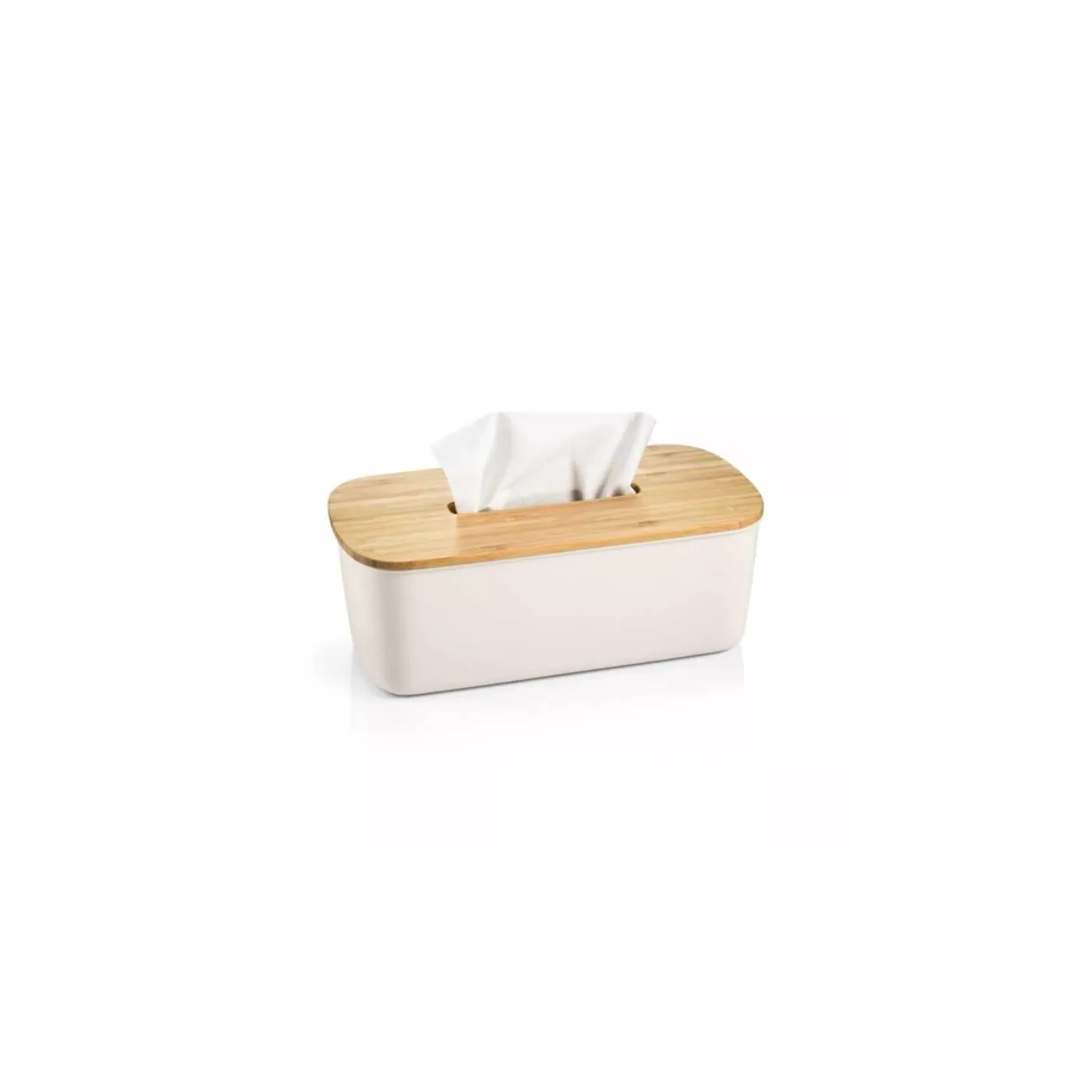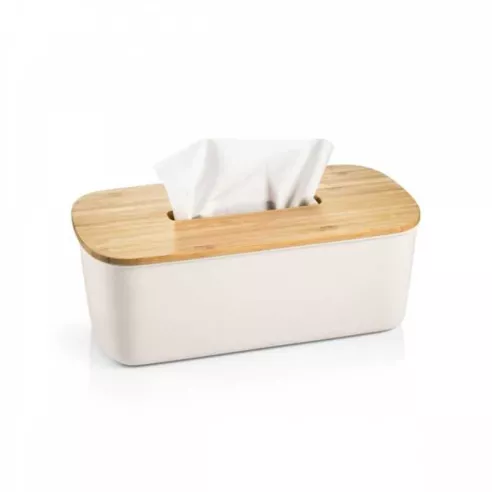 Excelente para guardar y retirar fácilmente pañuelos de papel en cajas bajas y altas. Fabricado de bambú natural y plástico resistente, con tratamiento antideslizante. El producto es apto para lavavajillas. Limpiar la tapa con un paño húmedo