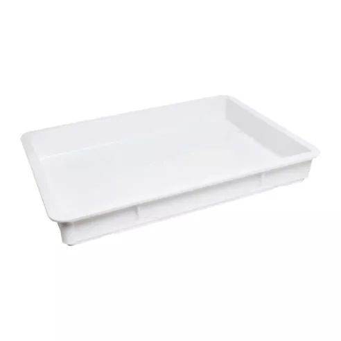 Caja de masa para pizza de 18 x 26 x 3 pulgadas se produce para la preparación, almacenamiento y prueba de masa. También puede dejar que la masa en esta caja se levante antes de hornear. Está hecho de polipropileno blanco y tiene una forma rectangular. Es perfecto para amasar la masa dentro de la caja sin derramar demasiado producto. Es un suministro de pizza necesario para cocinas comerciales en pizzerías, restaurantes y hoteles.
